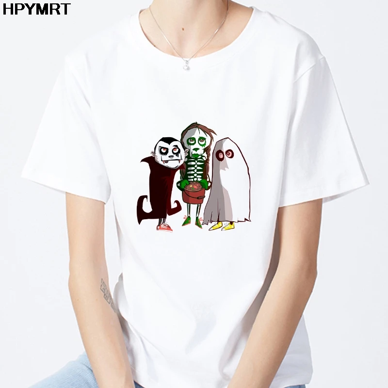 Женская футболка в стиле Харадзюку на Хеллоуин, футболка с круглым ...