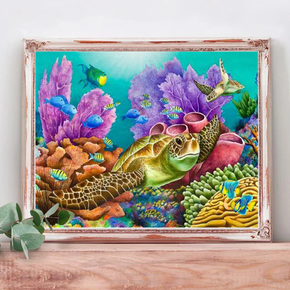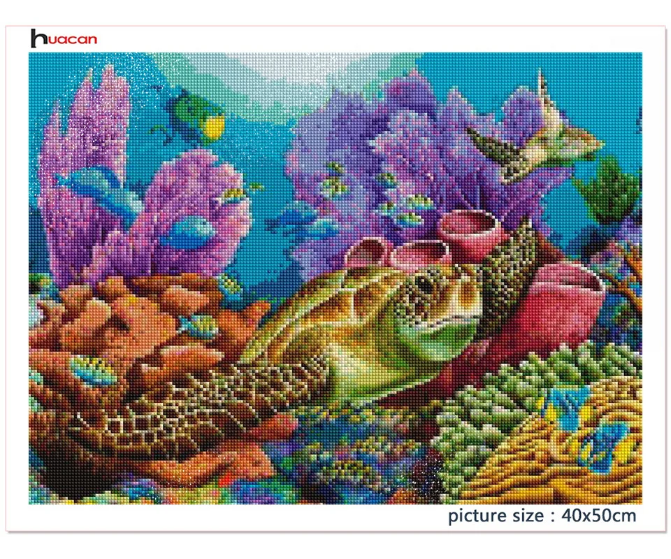 Huacan алмазная вышивка полная черепаха картины стразами алмазная мозайка животные живопись море пейзаж декор для дома