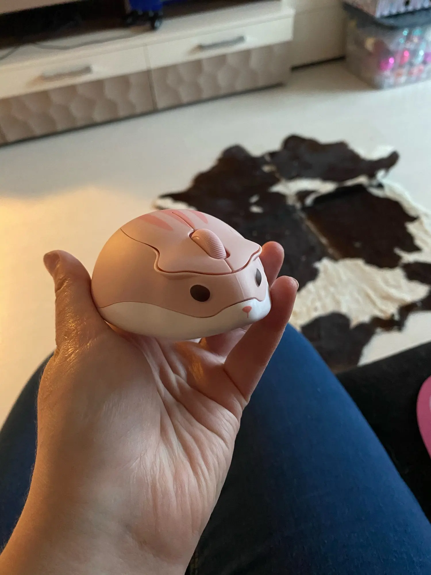 Действительно милая мышь/хомяк, с удобным отделением для usb. Свет светится, когда мышь находится в движении, но он исчезает через несколько секунд после того, как движение остановилось. Отлично работает.