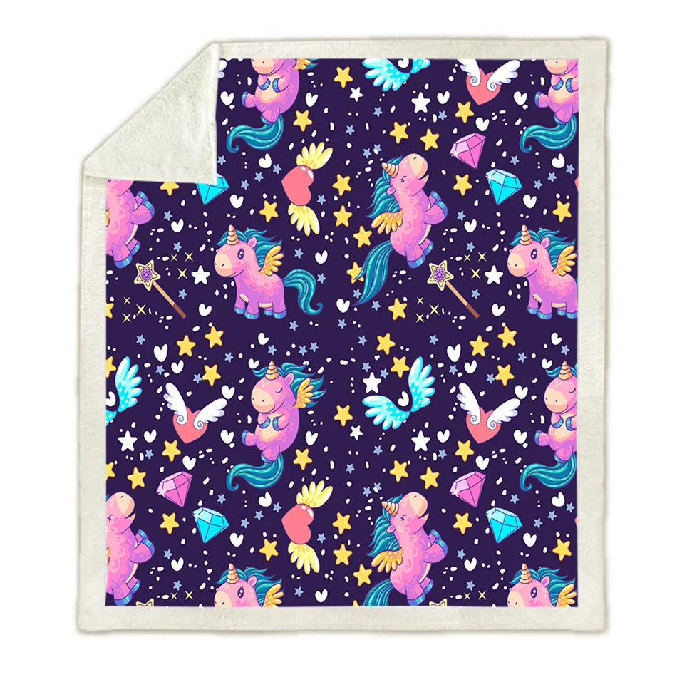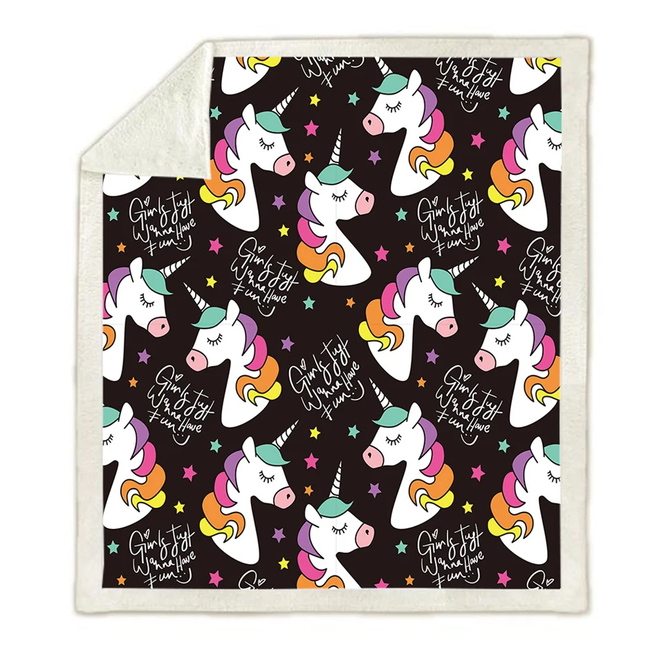 Одеяло с рисунком единорога для дивана-кровати для детей и взрослых, мягкое теплое зимнее флисовое детское одеяло, покрывало для кровати, покрывало для дивана, автомобиля