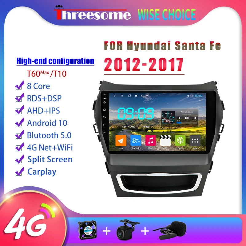 Автомобильный радиоприемник Android10.0 для Hyundai Santa Fe 3 2013-2017 RDS DSP 4G ENT WIFI автоаудио 2 Din IPS 4G + 64G навигация GPS головное устройство