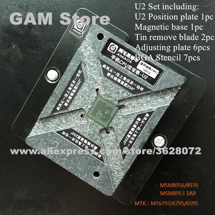 Описание: Amaoe U2 Reball Plate Set MSM8953/8956/8976/MT6797/6795/6595 CPU IC Solder Location Platform Magnet Base BGA Stencil Tin Plant