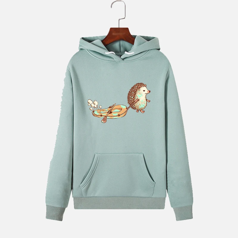 Осень шнурок с принтом ЁЖ Дамский фуражку кофта; Уплотенный свободные женские кофты 2021 нoвaя зимняяя пoвсeднeвнaя v-образным вырезом, зимний свитер