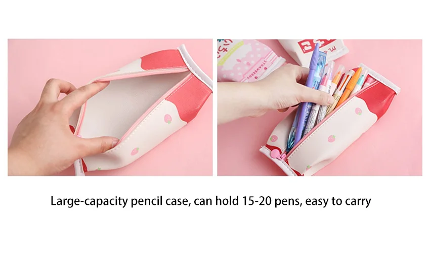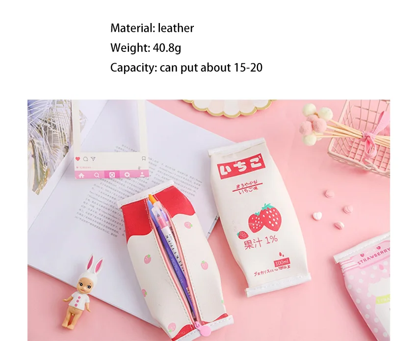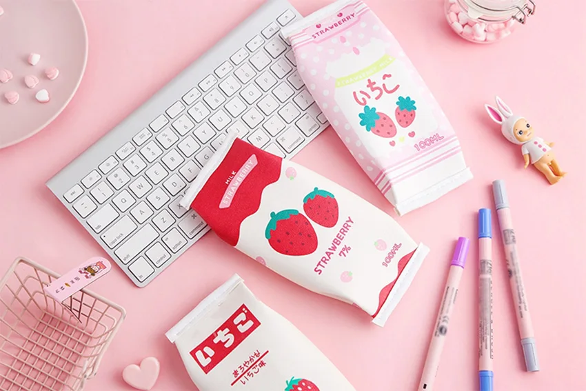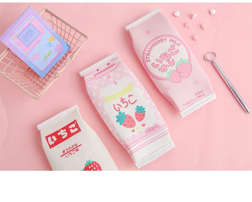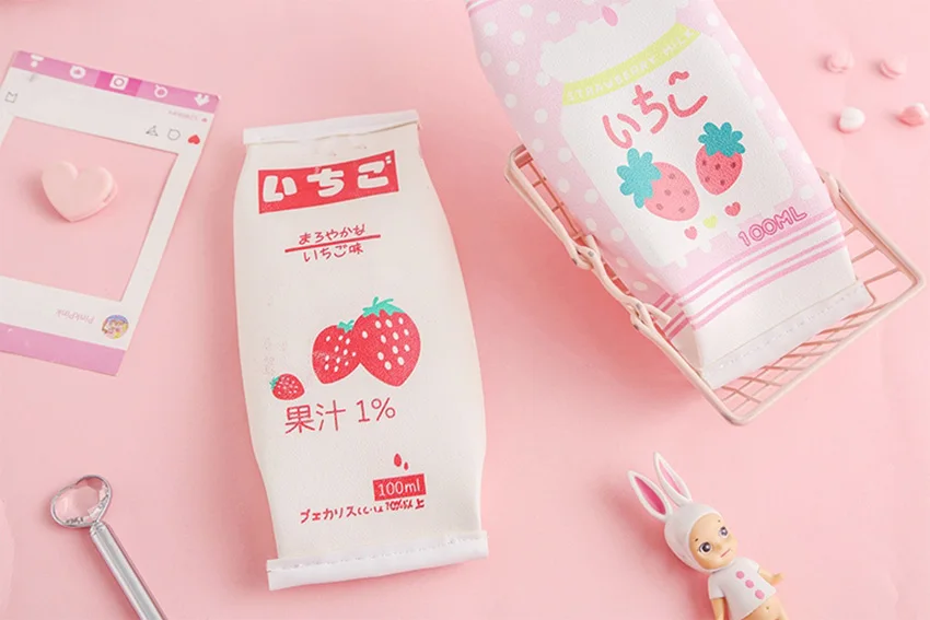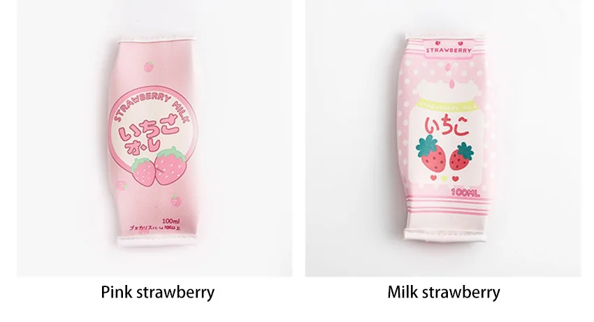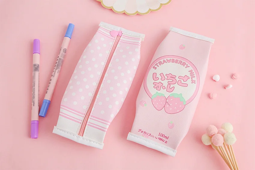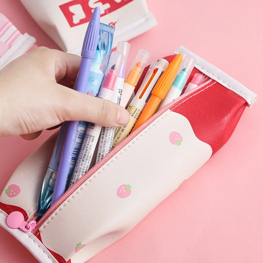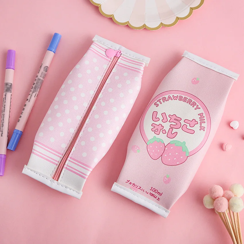 Милый чехол для карандашей с клубничным молоком, пеналы из ПУ материала в форме молока, футляр для ручек, канцелярские принадлежности для офиса, школы, студентов