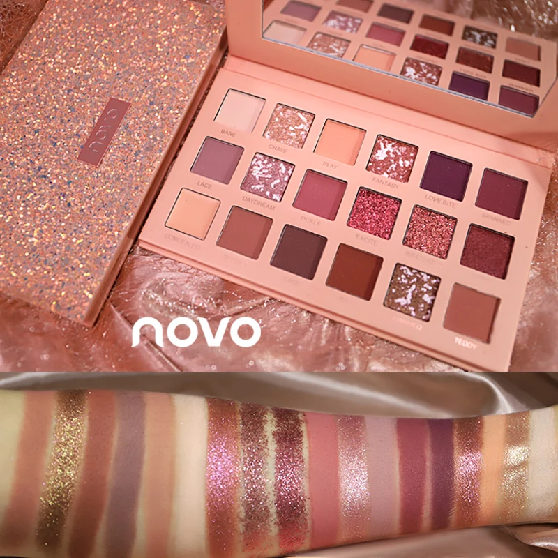 NOVO матовые перламутровые Сияющие Кристальные блестящие тени для век палитра 18 цветов Шиммер пигментированный макияж глаз шелковистые на ощупь Косметика для век