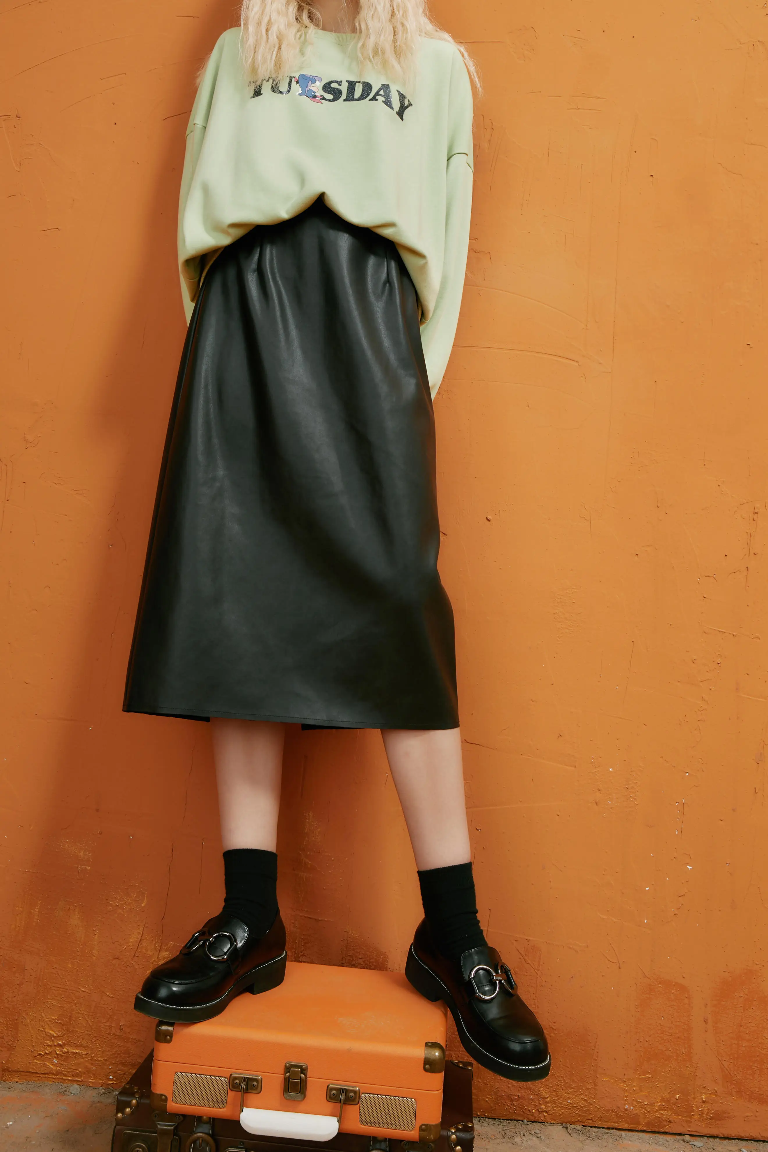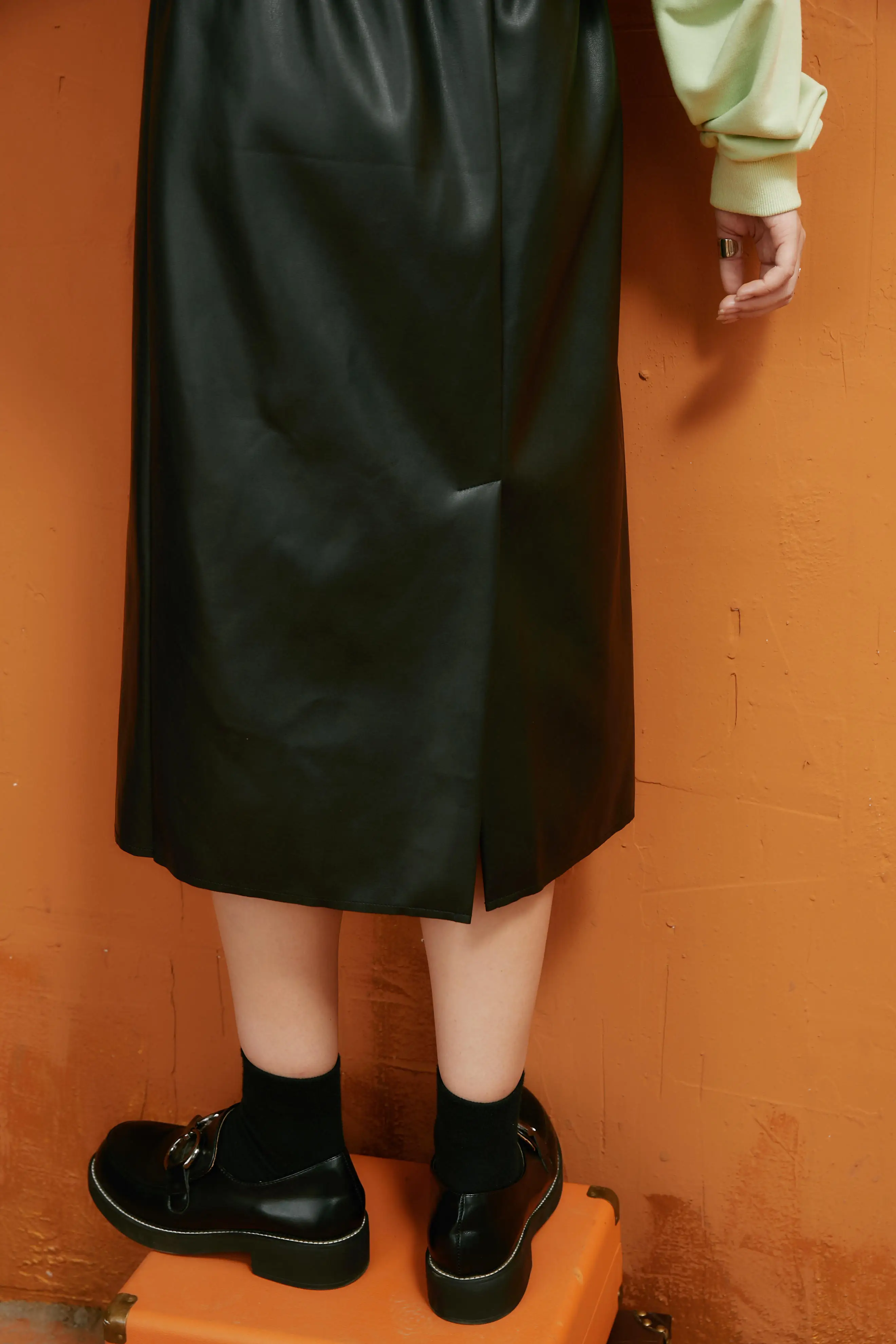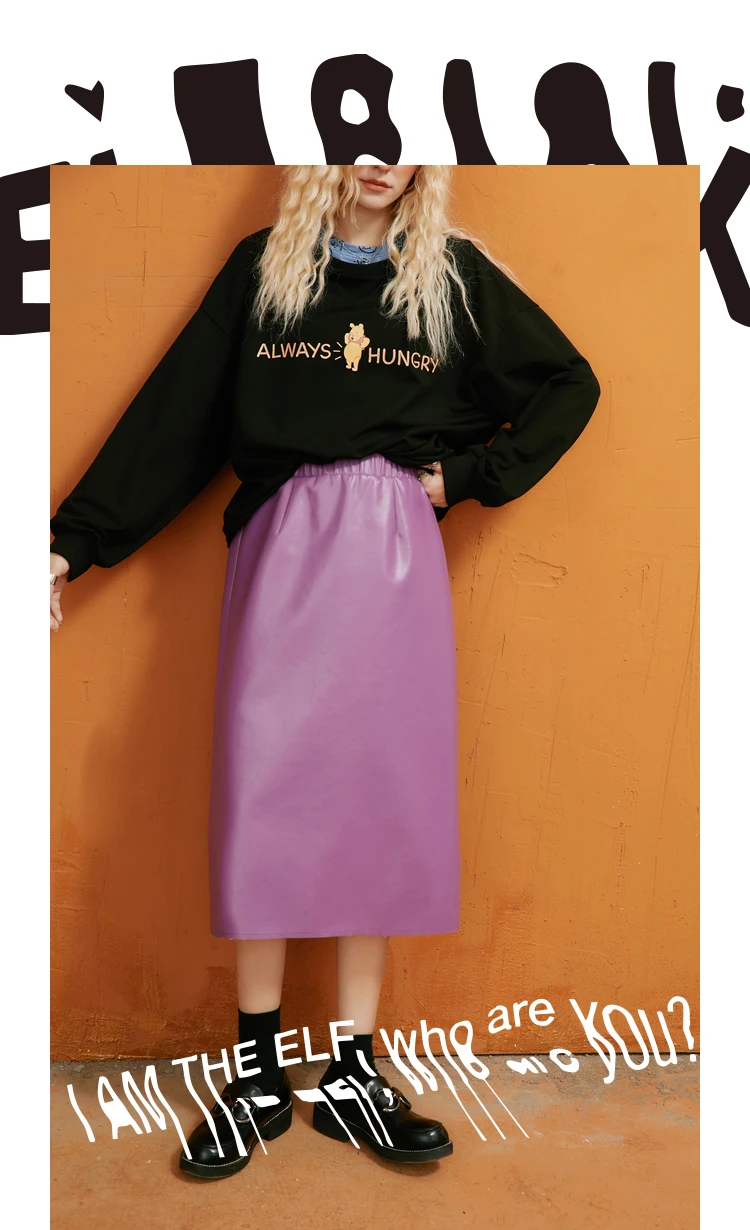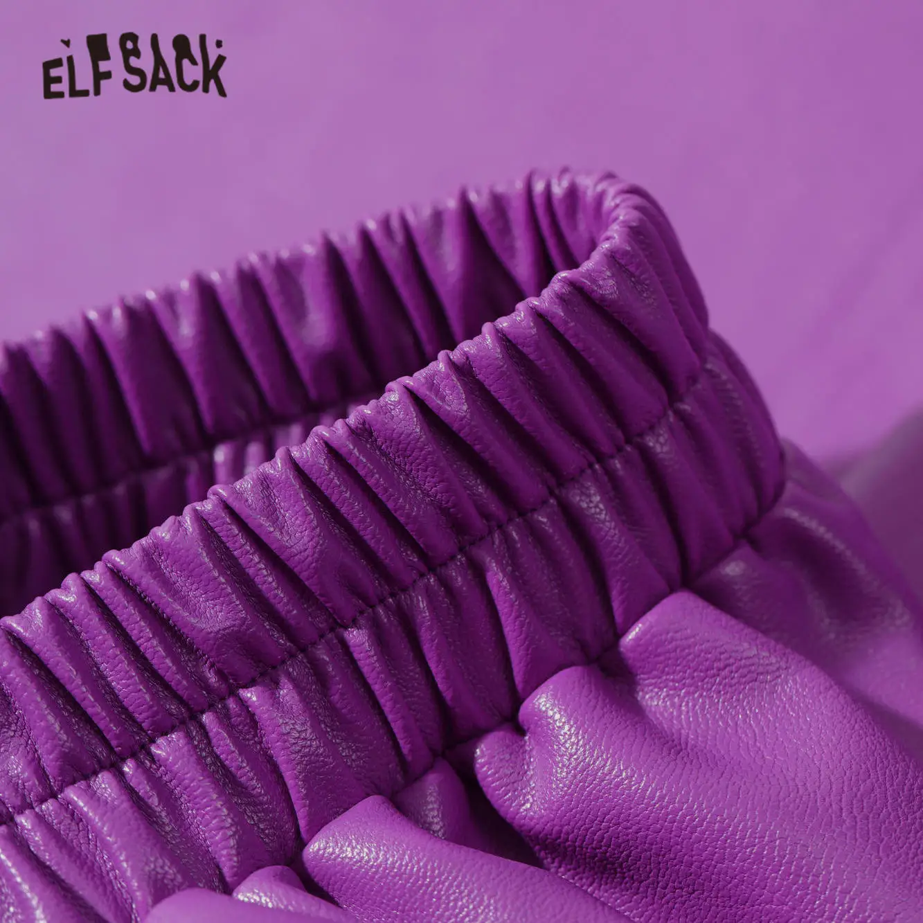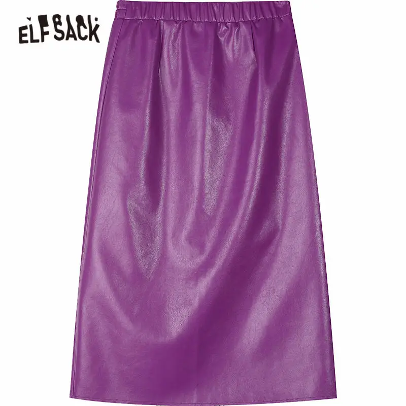 ELFSACKфиолетовая однотонная кожаная юбка с высокой эластичной талией для женщин, осень 2020, черные однотонные корейские женские обтягивающие базовые повседневные брюки