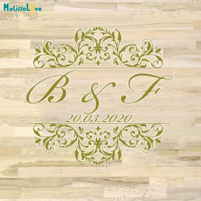 Индивидуальные наклейки на пол с изображением невесты жениха и даты свадьбы, настенные наклейки большого размера, съемные наклейки, персонализированный виниловый Декор YT5131