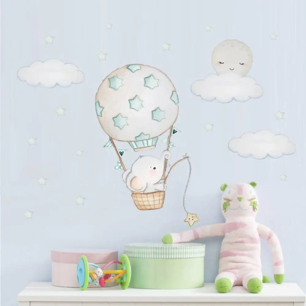 Съемные Мультяшные детские наклейки на стену в виде слона для детей, водонепроницаемая декорация настенное зеркало для детской комнаты, наклейки с облаком, луной, звездами