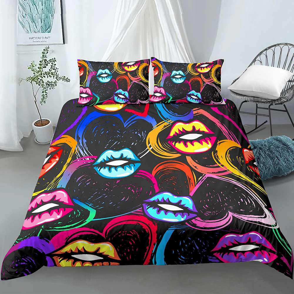 3D ботинки с принтом губы Постельное белье пододеяльник наволочка С...