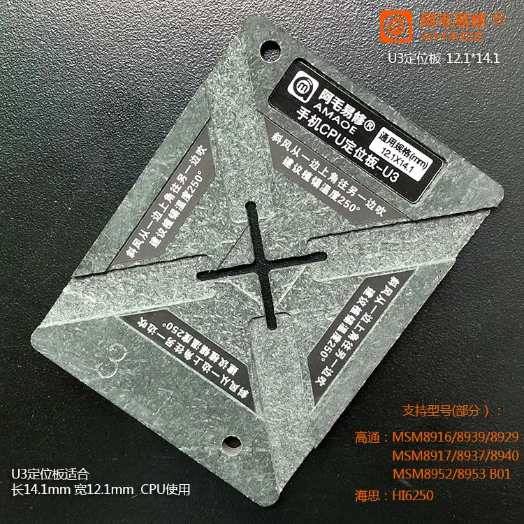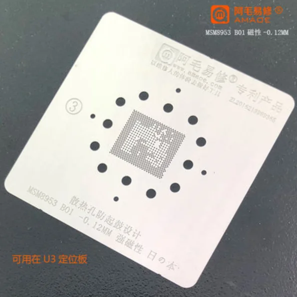 Описание: Amaoe U3 Reball Plate Set MSM8916/8939/8917/8940 CPU IC Solder Location Platform Magnet Base BGA Stencil Tin Plant Net