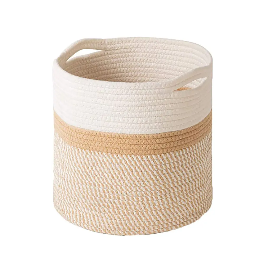 Тканая корзина для хранения из хлопчатобумажной веревки, прочная круглая форма, ежедневное использование для офиса/дома/питомника, простой дизайн, органайзер, корзиныUS $12,60