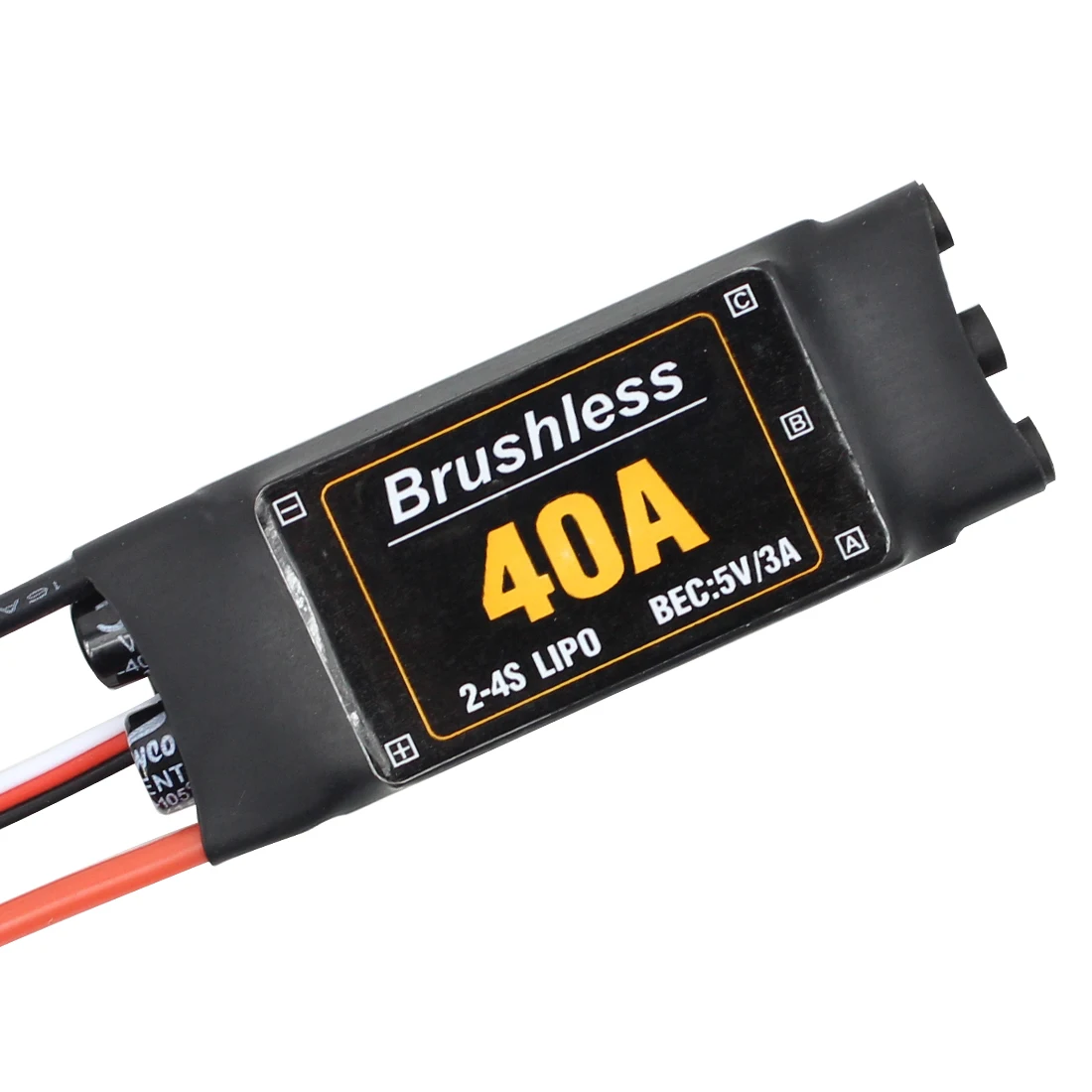 Типы: длинные, КороткиеТок: 40 АВыходная мощность: постоянный ток 40 А, короткий ток 55 А (не менее 10 секунд)Потребляемая мощность: 2-4 литиевые батареи (не входят в комплект)Выход BEC: 5 В при 3 А (Линейный режим регулятора-Линейный режим)Максимальная скорость: 210000 об/мин для 2-полюсного двигателя, 7000 об/мин для 6-полюсного двигателя, 35000 об/мин для 12-полюсного двигателяРазмер: (приблизительно) 68x25x8 мм
