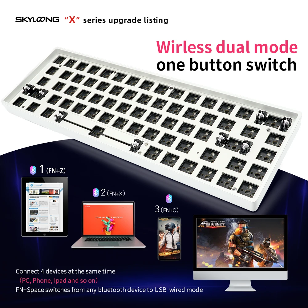 Беспроводная клавиатура gk68xs gk68x gk68, bluetooth-провод с функцией горячей замены, двойной режим, механическая клавиатура на заказ, rgb-переключатель, светодиоды, Тип c, есть программное обеспечение
