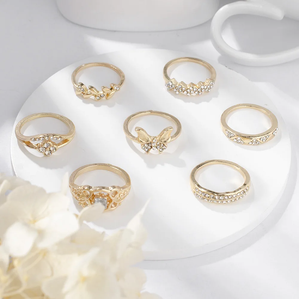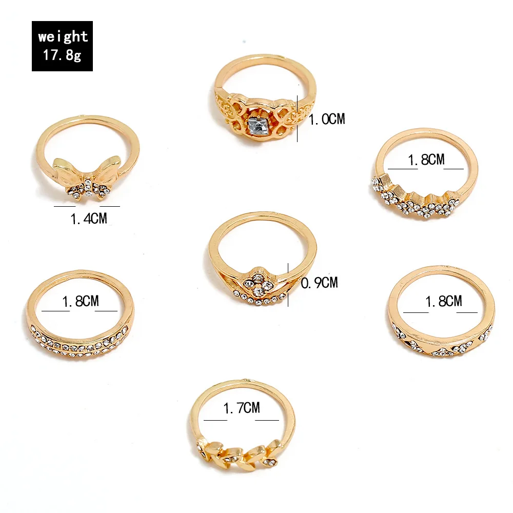 Женский богемный комплект из 7 предметов, кольцо в ретро стиле Стразы с листьями, цветами, листьями, бабочками и кольцами, геометрические ювелирные украшения