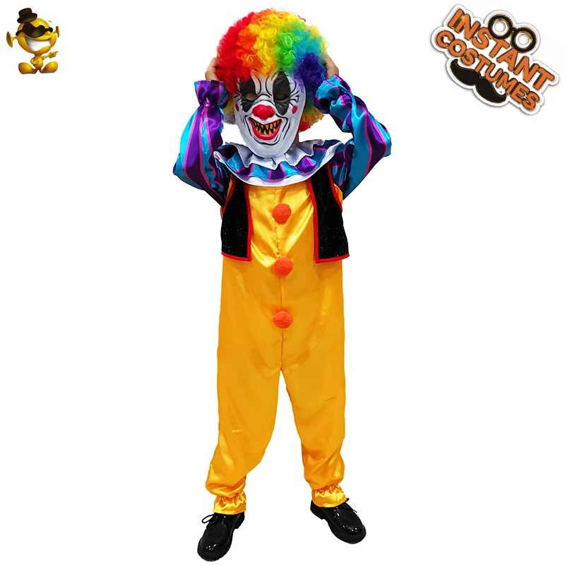 QLQ мужской страшный костюм клоуна для ролевых игр мальчика Забавный комбинезон клоуна косплей детские костюмы для Хэллоуина мужской костюм