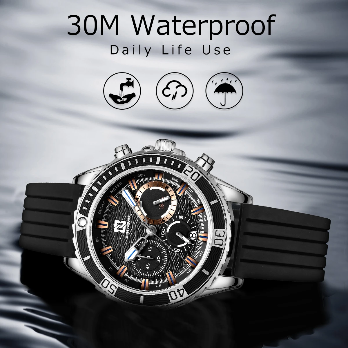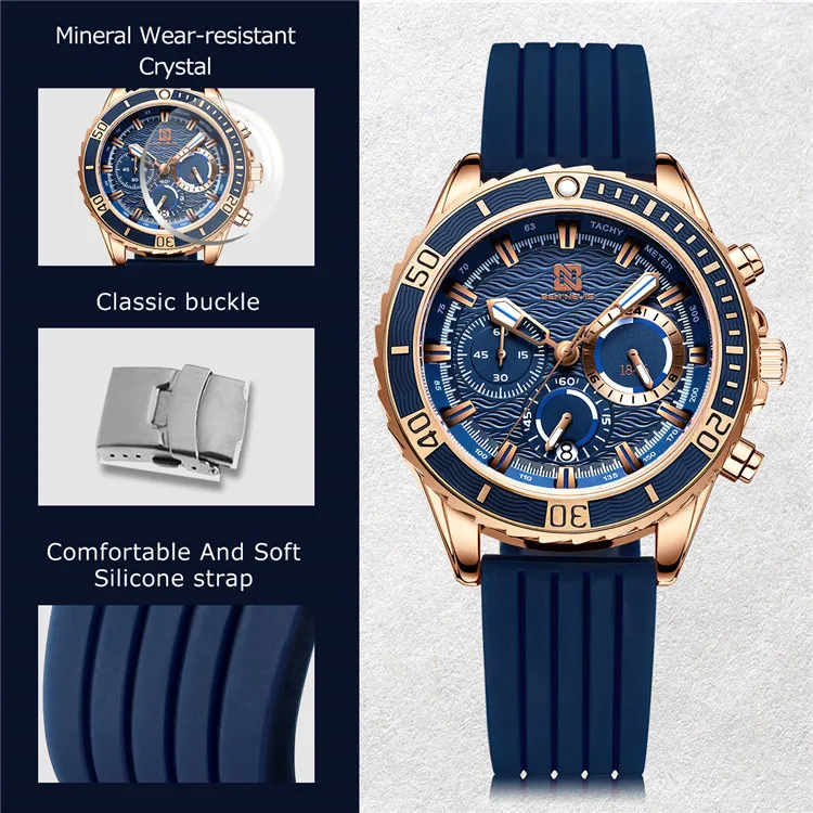 Часы наручные Ben Nevis Мужские кварцевые с резиновым ремешком, модные роскошные Брендовые спортивные с календарем, 2020