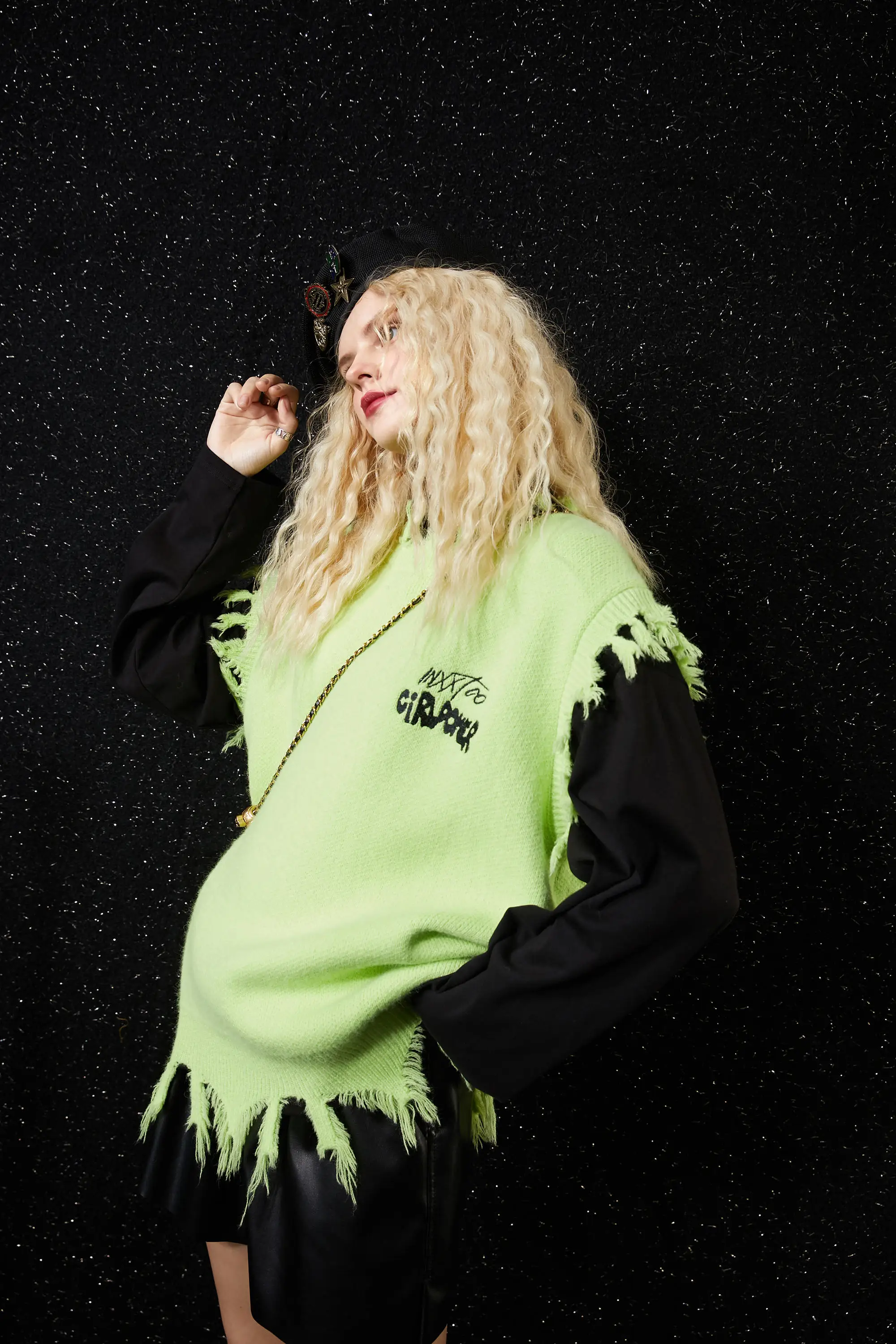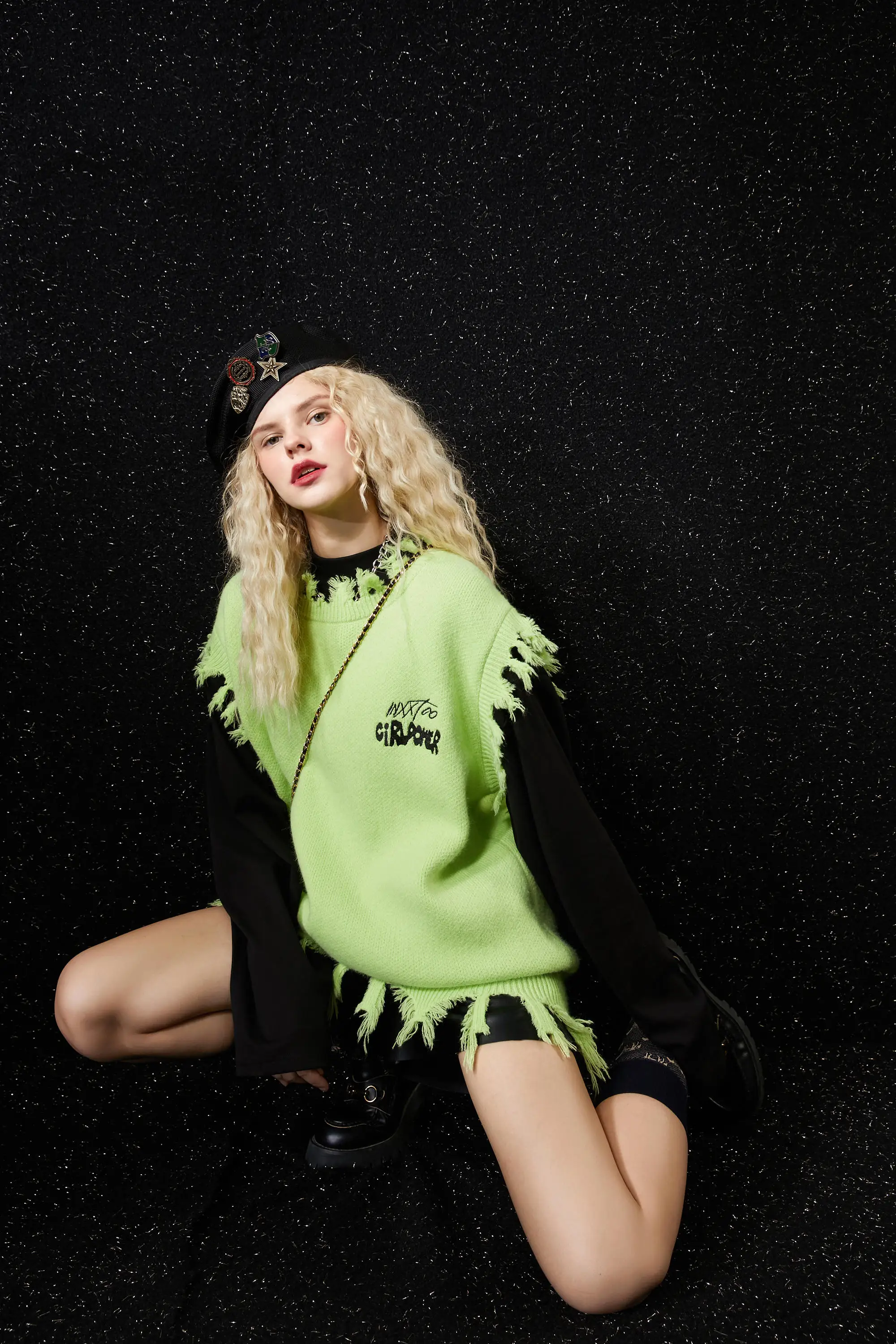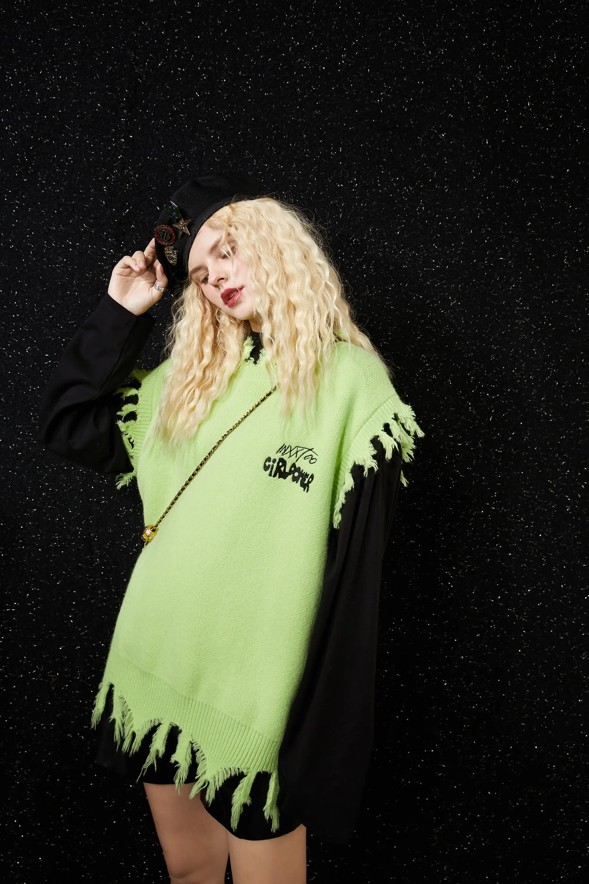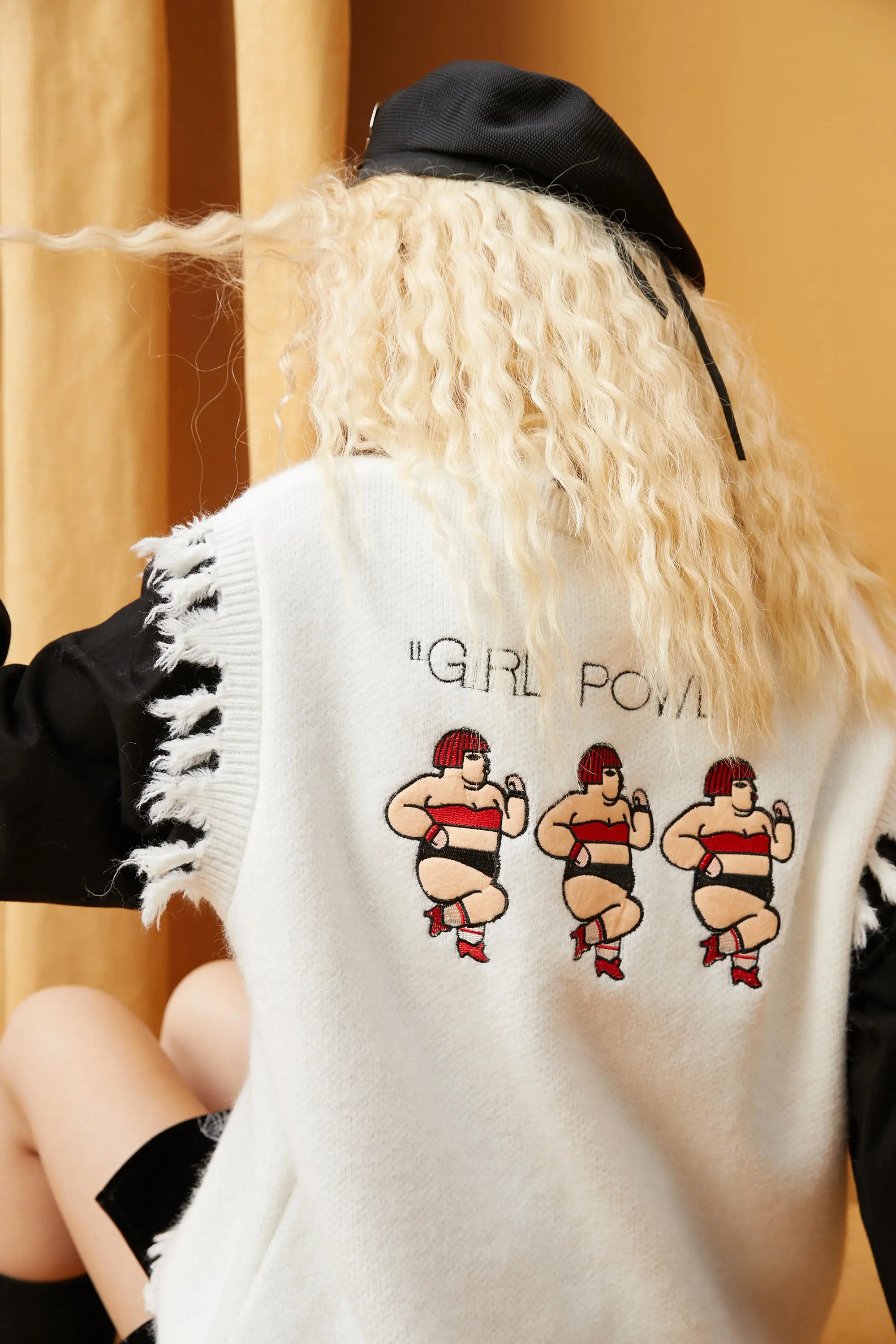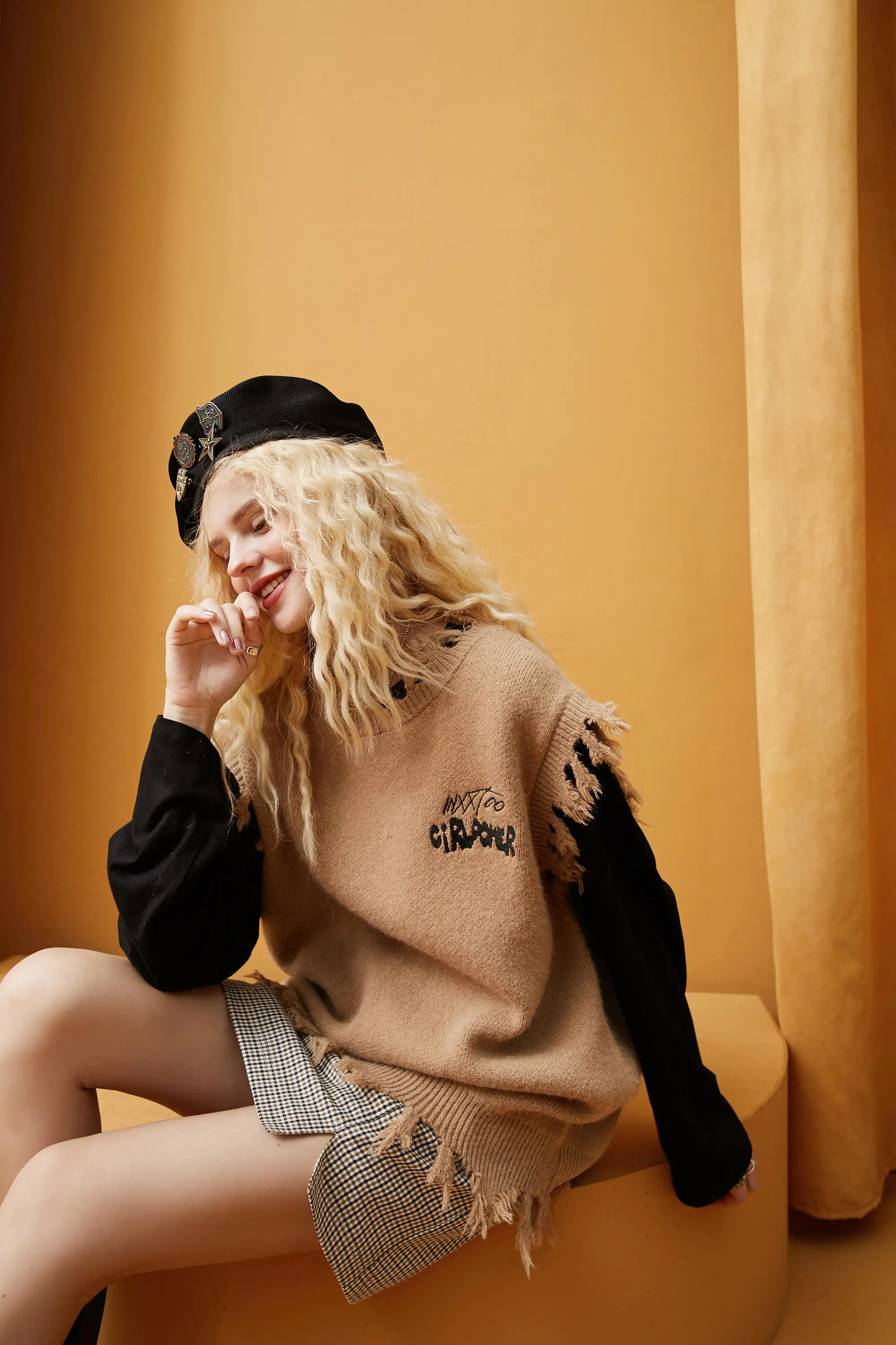 ELFSACKПовседневный трикотажный Женский пуловер с графической вышивкой, свитер, жилет, осень 2020, винтажный Женский Повседневный Топ с кисточками в Корейском стиле