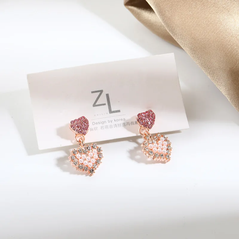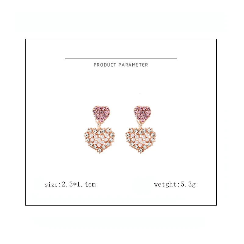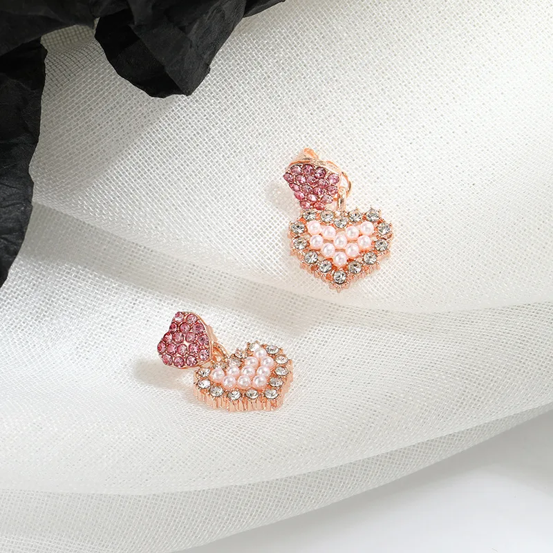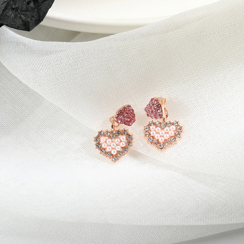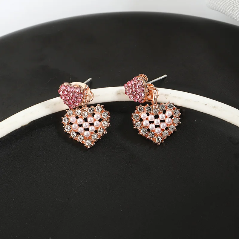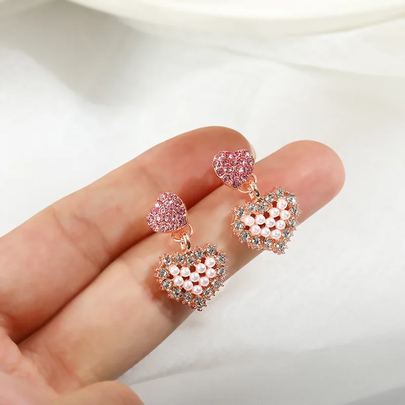 Розовые серьги Стразы в форме сердца, изящные и маленькие жемчужины, женские модные милые и милые ювелирные изделия, аксессуары в подарок