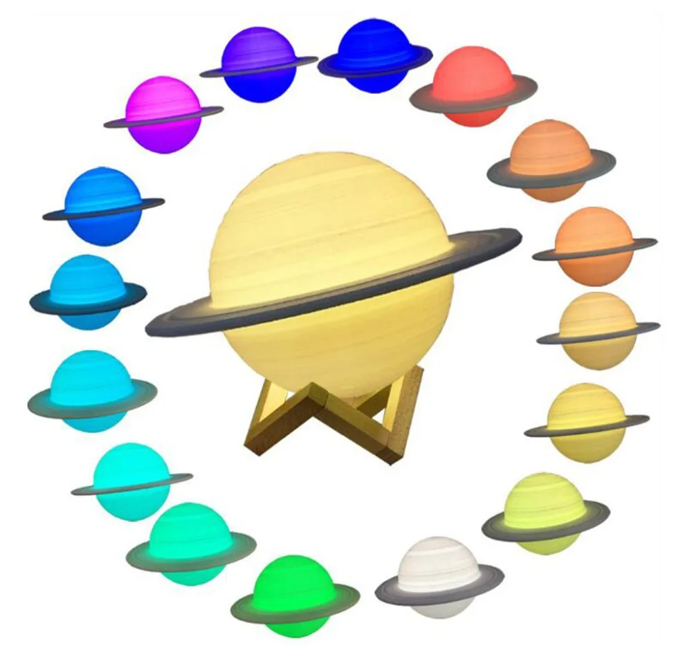 Лампа Сатурна с 3D-принтом, перезаряжаемая от USB, украшение для до...