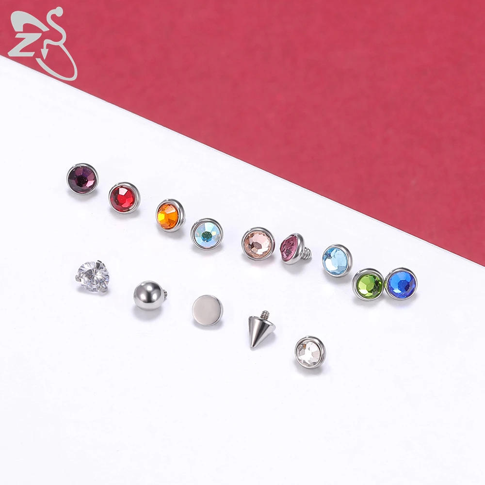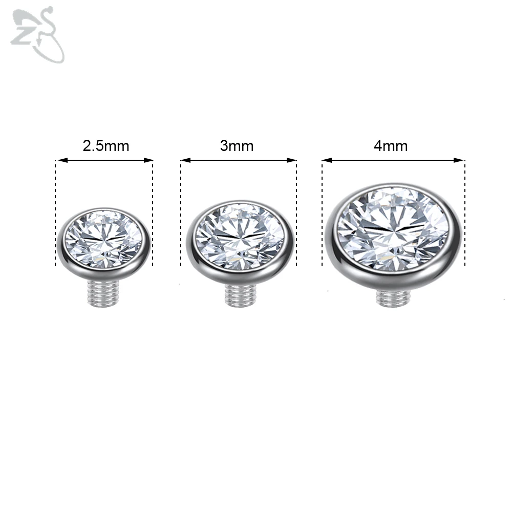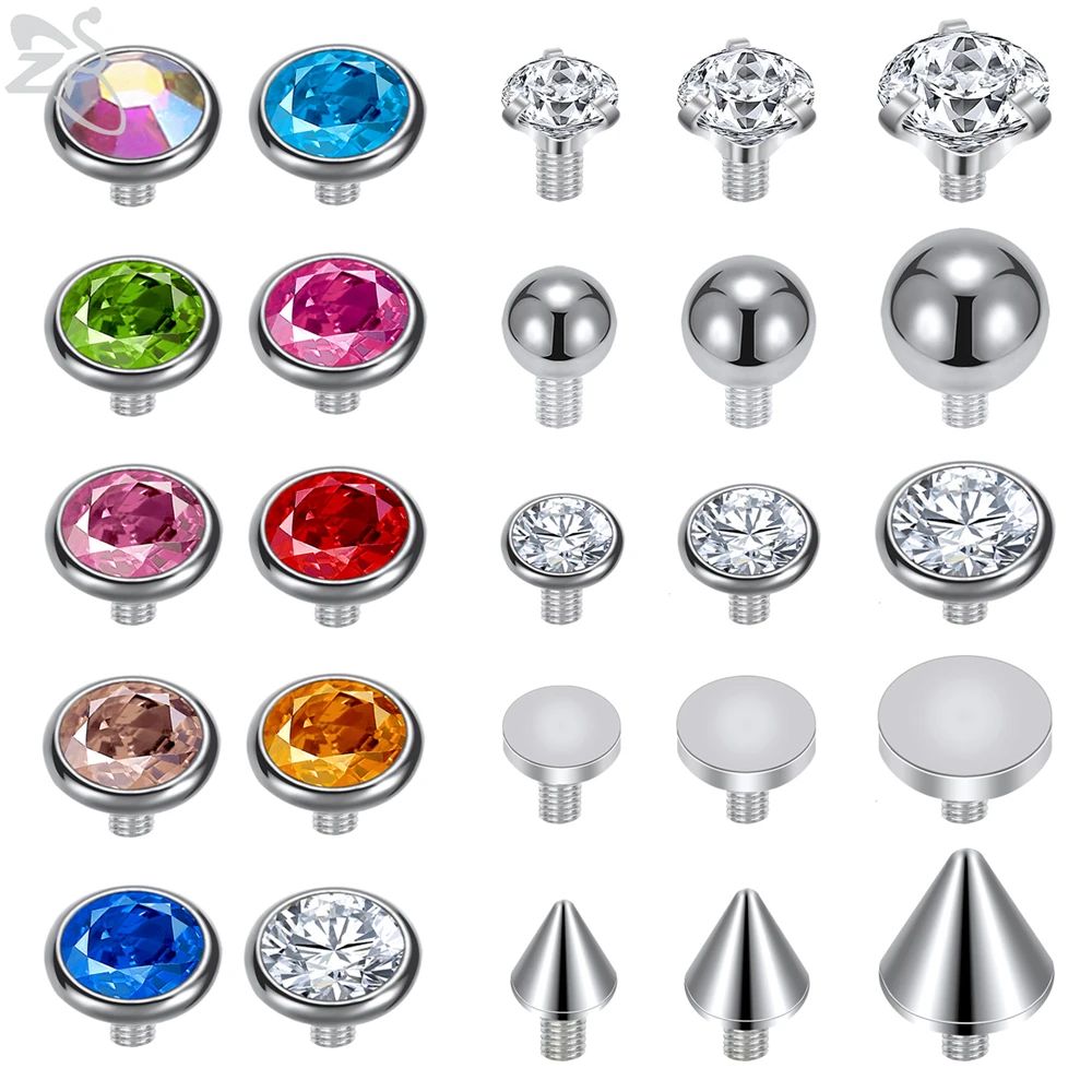 ZS 1 шт. цветной микро дермальный пирсинг титана Нержавеющая Сталь CZ Кристалл дермальный якорь поверхность пирсинг Топ Кожа дайвер основы