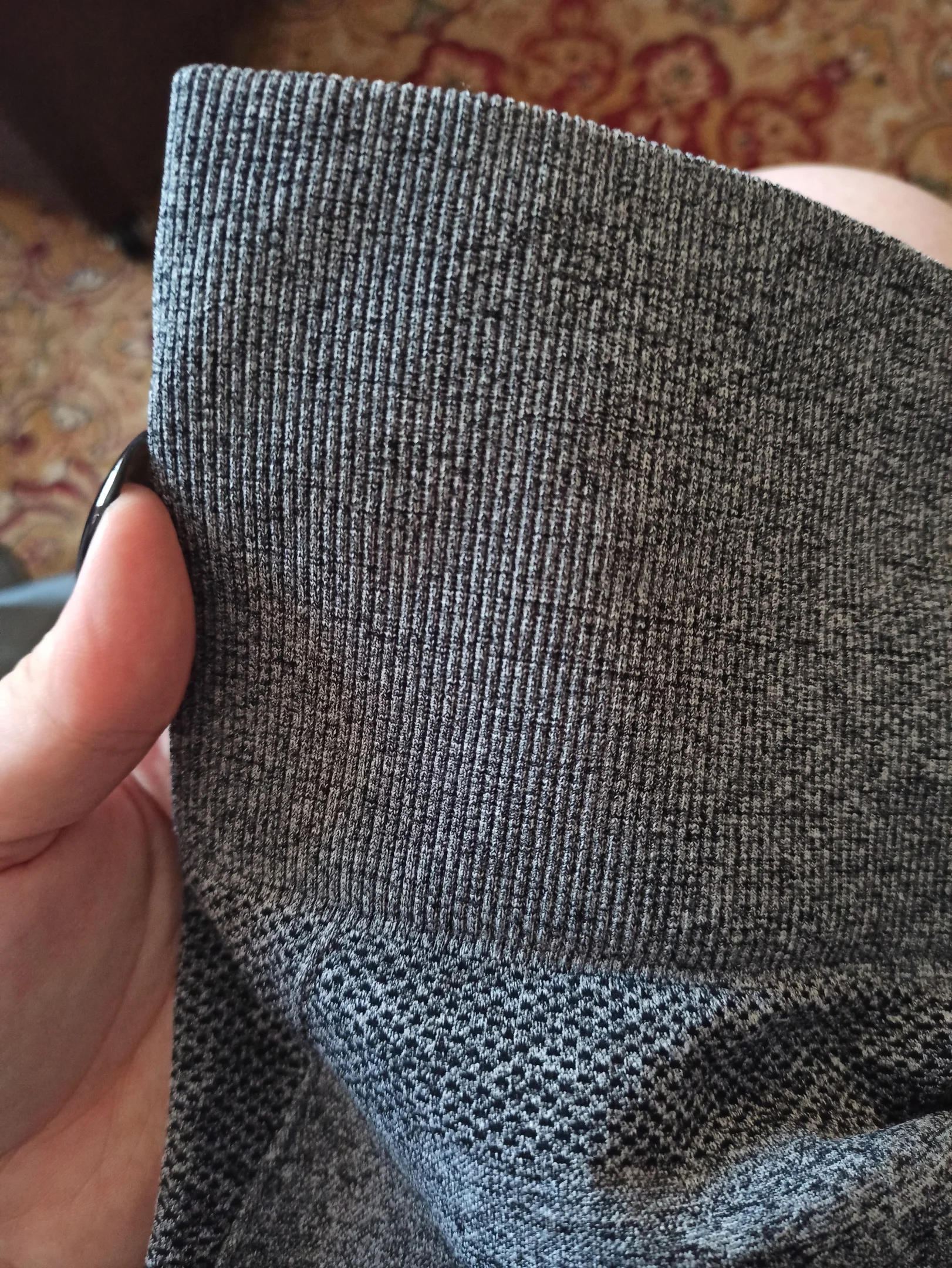 Доставка заняла полтора месяца. Я прогадала с цветом, леггинсы больше смахивают на плотные серые колготки, резинка на талии довольно плотная, но при занятиях спортом постоянно загибается, какими-то корректирующими или утягивающими способностями эти леггинсы не обладают, имейте ввиду при заказе. В целом качество на 7/10. На об 110 L хорошо подошел.