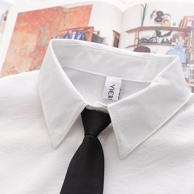 Женский комплект из двух предметов, белая блузка с галстуком и однотонный трикотажный жилет без рукавов с V-образным вырезом, осень 2020, женские комплекты в стиле преппи, одежда