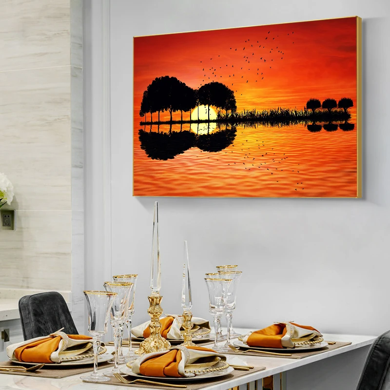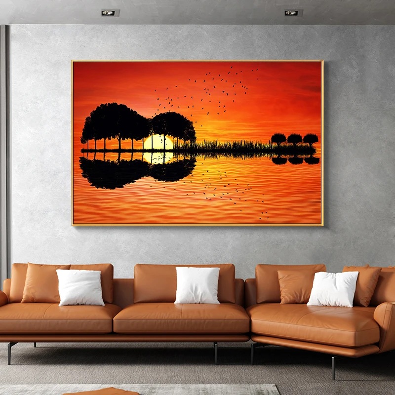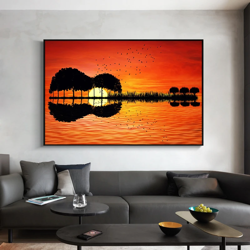 Отражение деревьев на закате гитары картина маслом на холсте искусство Cuadro Плакаты и принты Скандинавская картина на стену для Гостиная