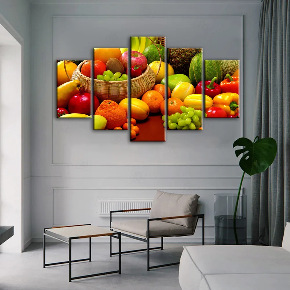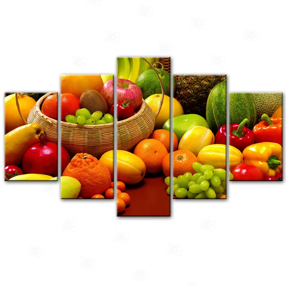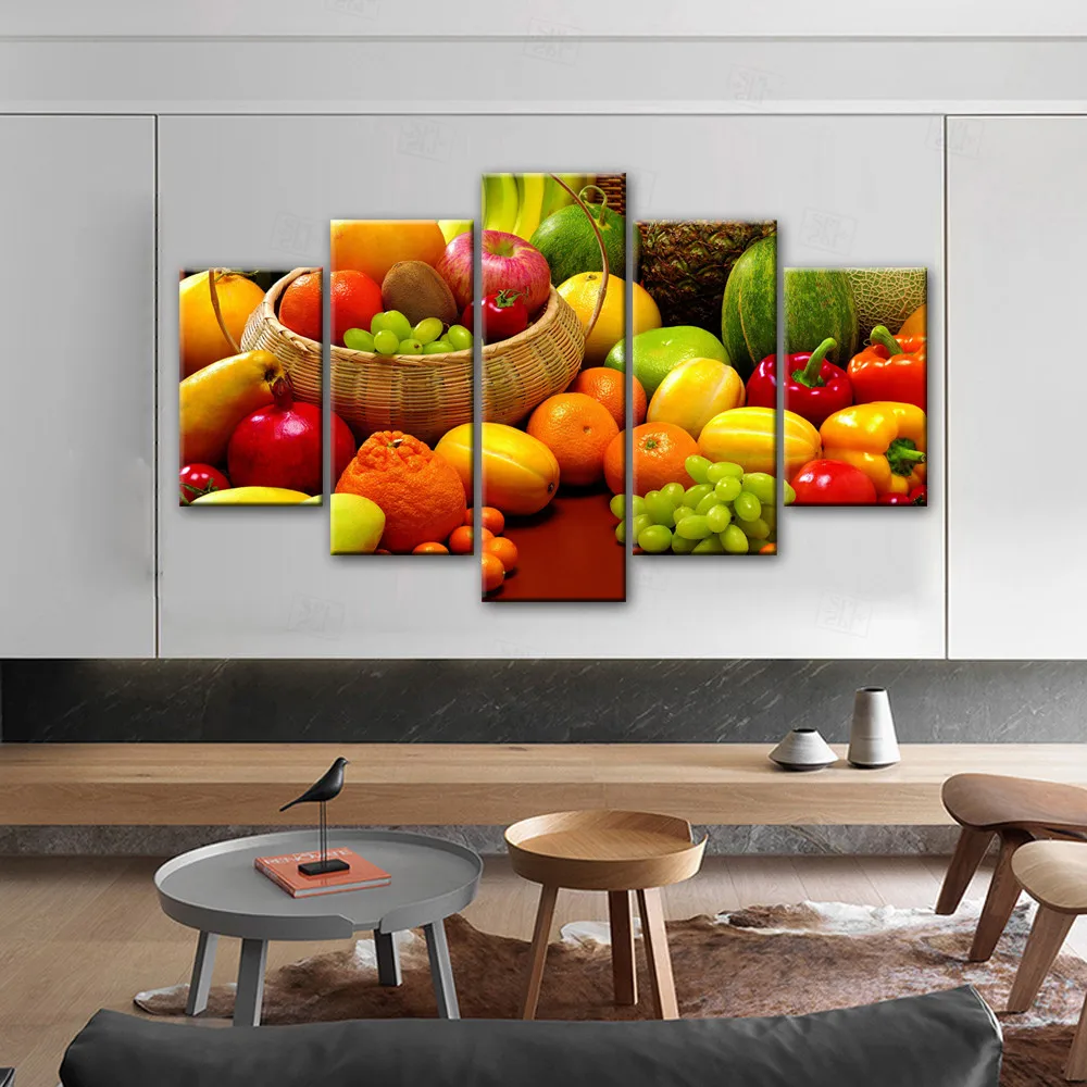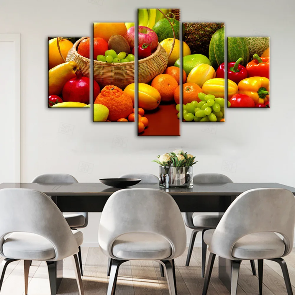 5 панелей кухонная тема декоративные холсты художественные принты разнообразные фрукты реалистичные модульные картины на стену для кухни комнаты