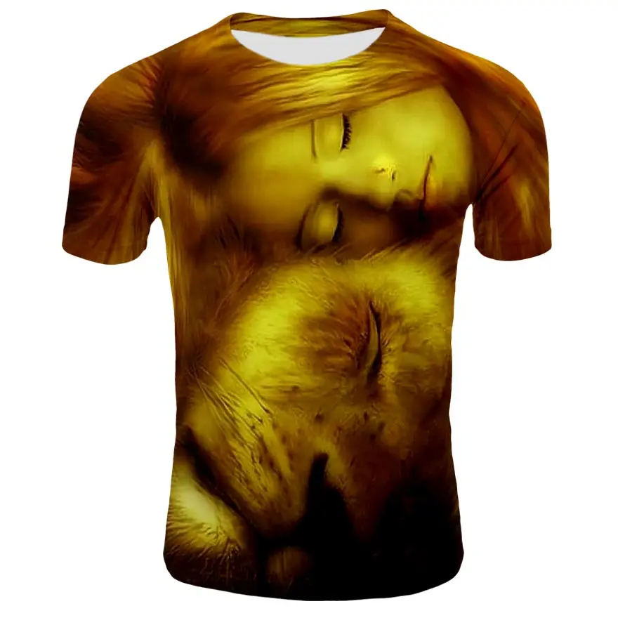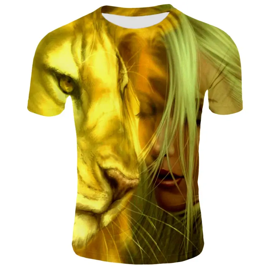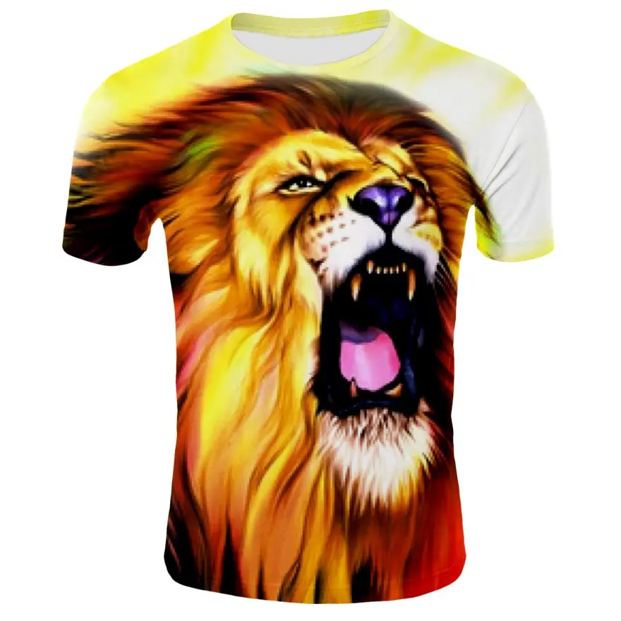 Новинка 2020, Мужская футболка с цветным 3D-принтом льва, модная футболка с интересным принтом