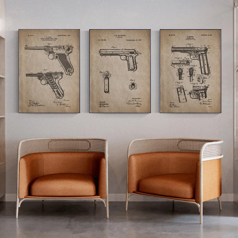 PurposeVintage Gun Illustration Art Painting Picture Wall Decor