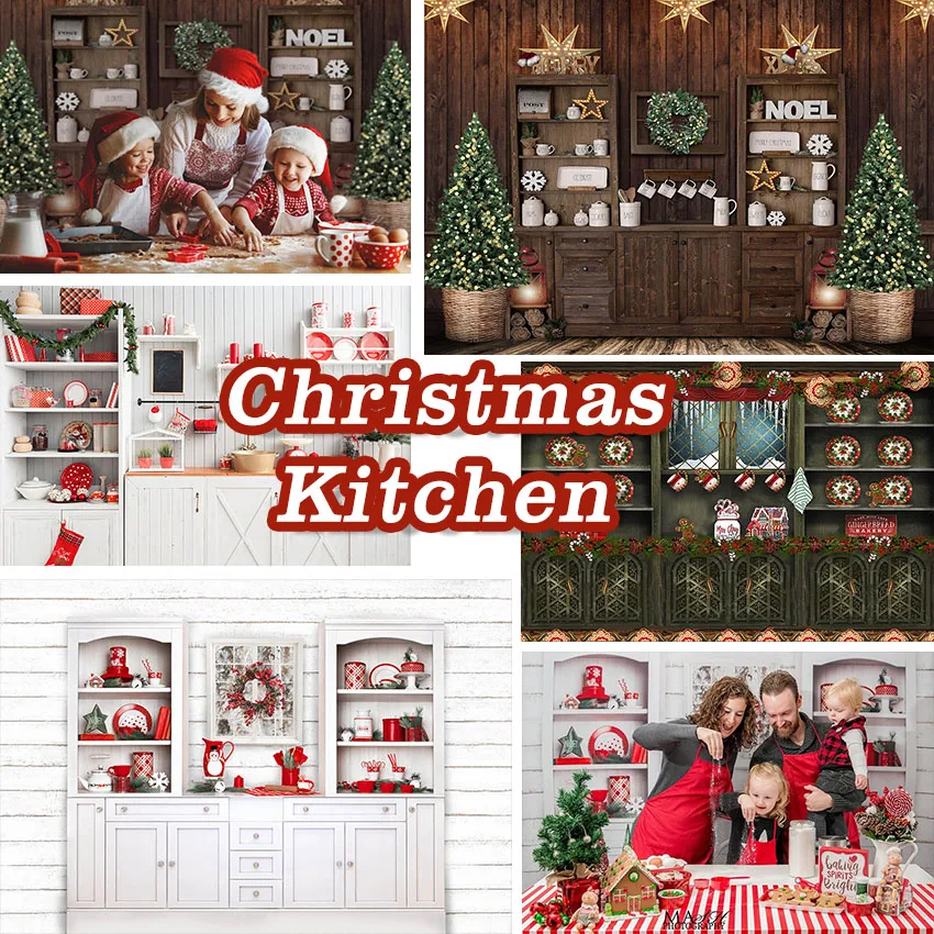 Mocsicka Рождество кухня фон для фотографии бизнес деревянный шкаф для взрослых детей семейный портрет фон для фотографии