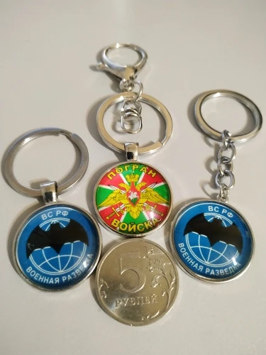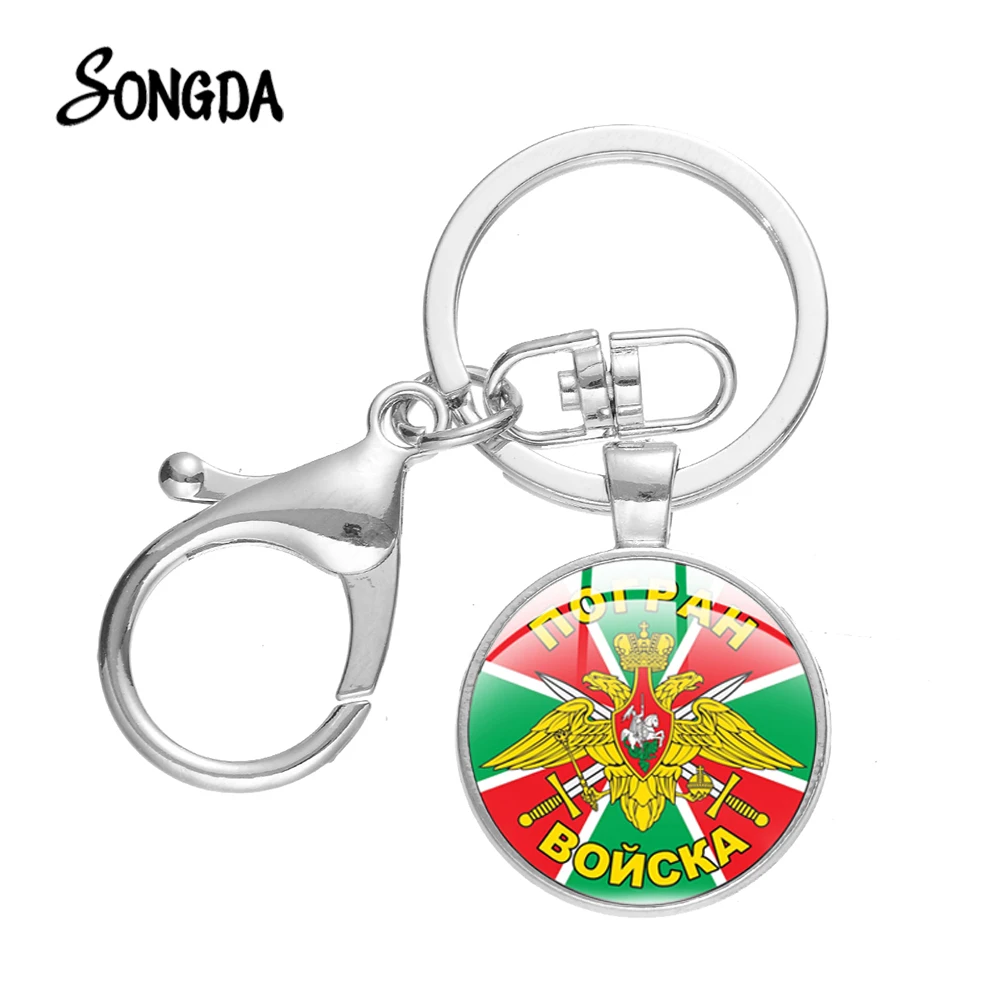 Брелок для ключей с кабошоном из стекла с изображением пограничных войск Российской Федерации