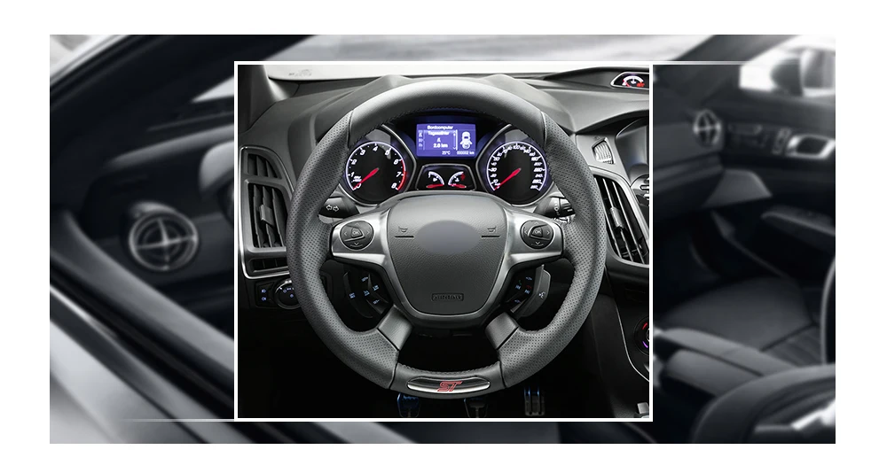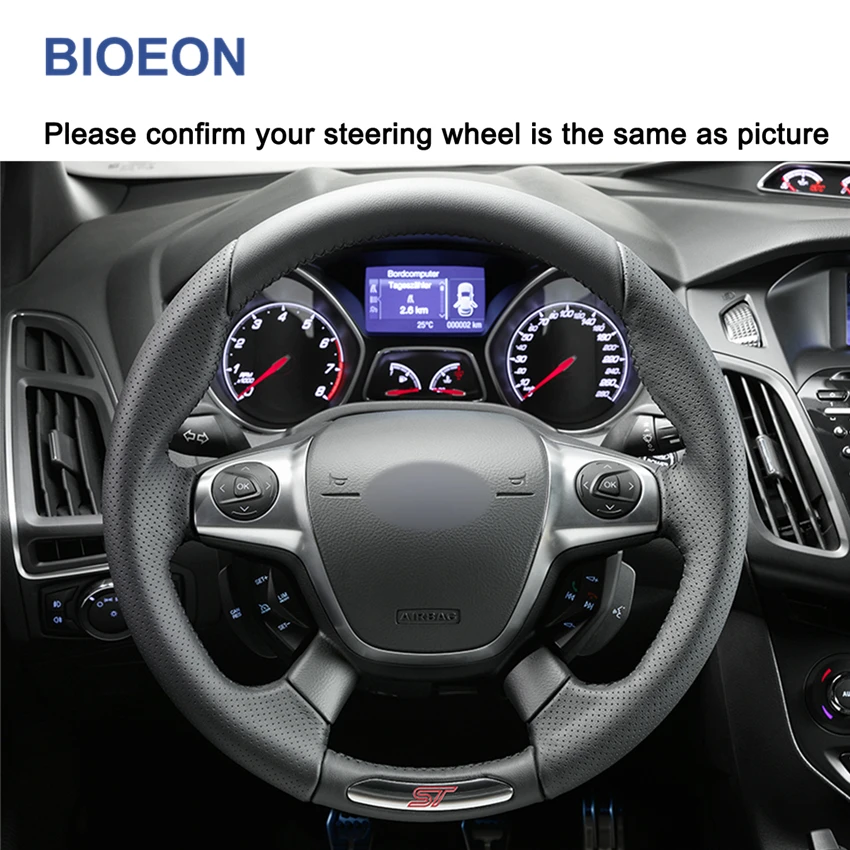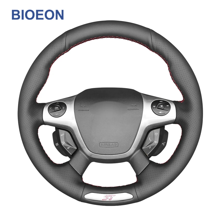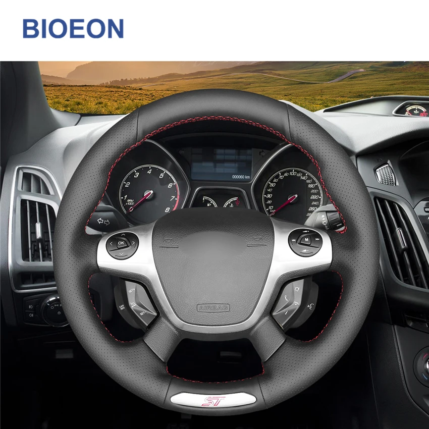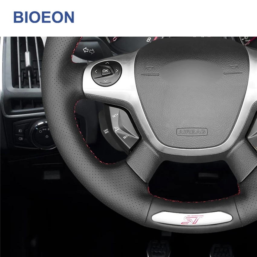 Ручная строчка черный PU искусственная кожа Чехол рулевого колеса автомобиля для Ford Focus ST 2012 2013 2014