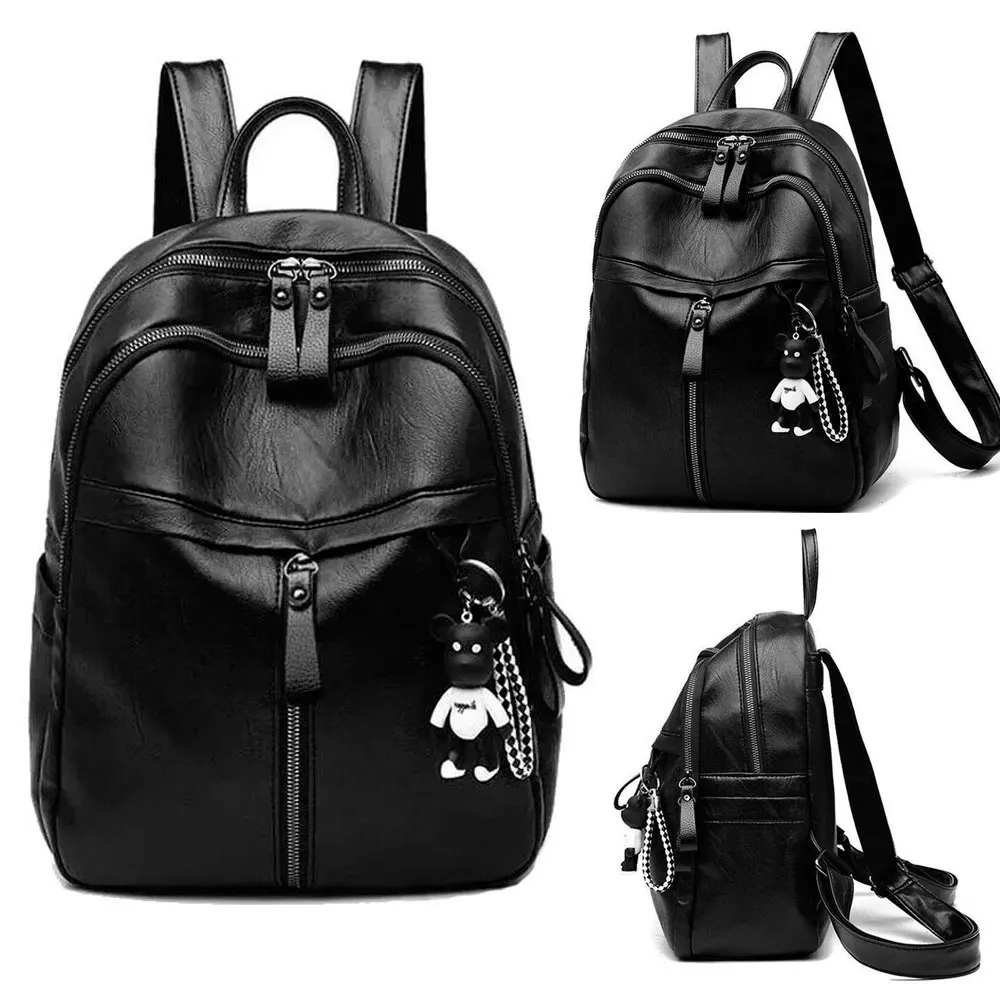 Модный женский черный кожаный рюкзак с несколькими карманами, больш...