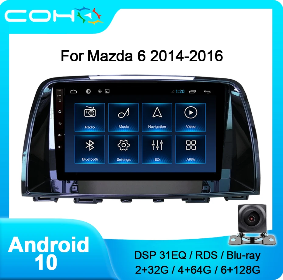 Автомобильный мультимедийный плеер COHO для Mazda 6 2014-2016, стерео-приемник, авто радио, Android 10,0, Восьмиядерный, 6 + 128G