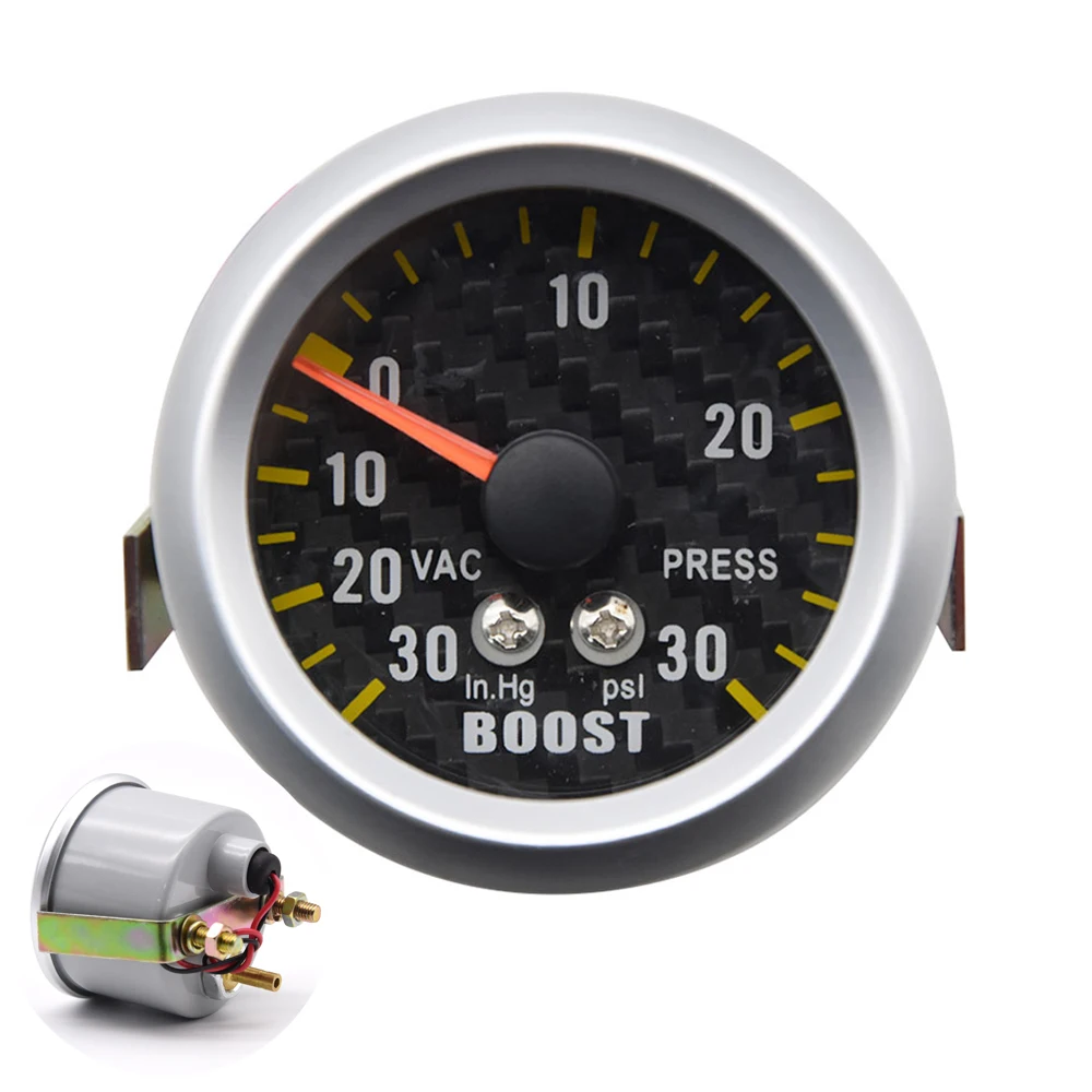 2-дюймовый автомобильный манометр турбонаддува 52 мм + Датчик-30 30 фунтов на квадратный дюйм, аналоговый измеритель лица из углеродного волокна с манометром, Держатель Стручка, тройные чашки, пластик