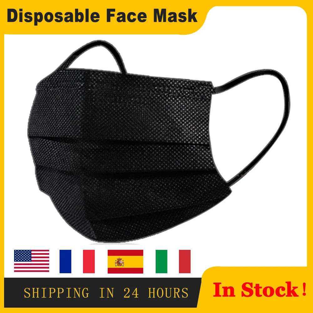 Черная 3-слойная одноразовая медицинская маска для лица с фильтром Пылезащитная противотуманная хирургическая маска для защиты здоровья против загрязнения и инфекции