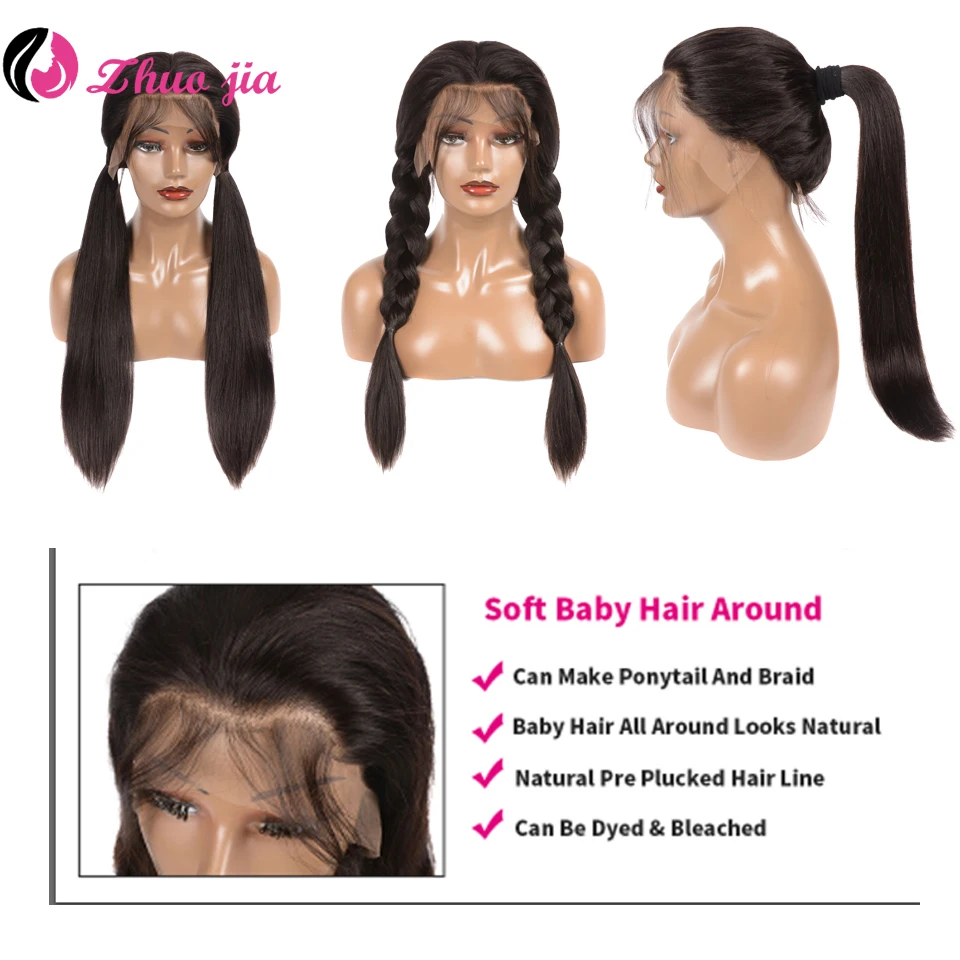 Парики из натуральных прямых волос, плотность 250, предварительно выщипанные, 360, 30 дюймов, бразильские волосы для женщин 13x6