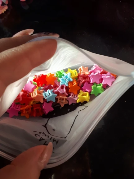Малюсенькие,но очень симпатичные заколочки.Вместо 50 штук,положили 52 шт.Все целые,без брака.Рекомендую)
