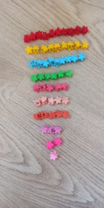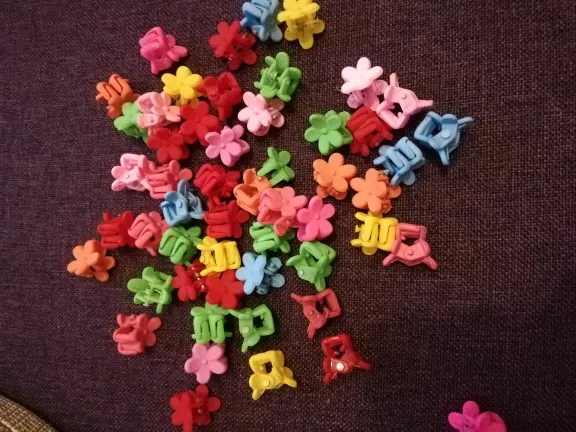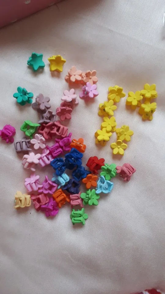 маленькие заколки. качество хорошее. ровно 50 штук. цвета нежные. жаль,что голубого цвета только одна штука. продавцу спасибо.