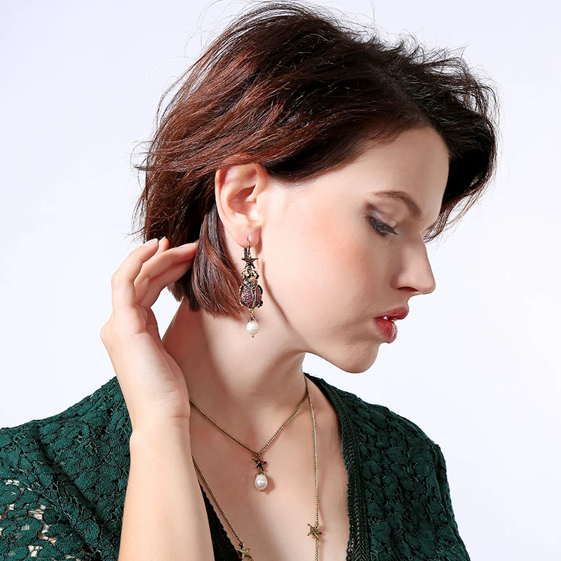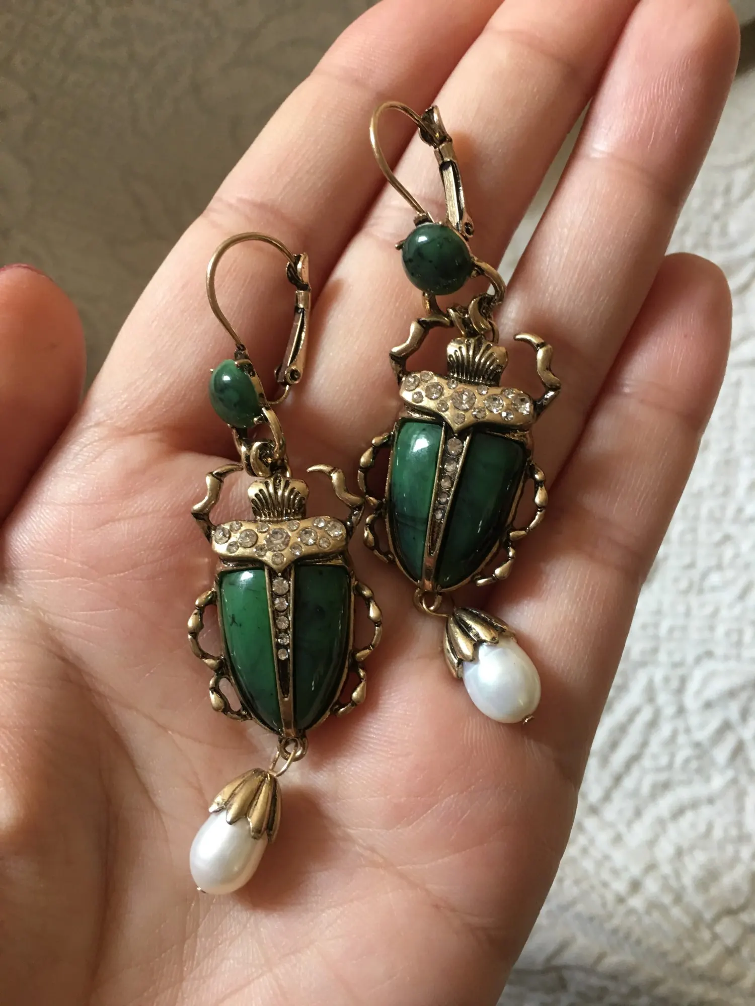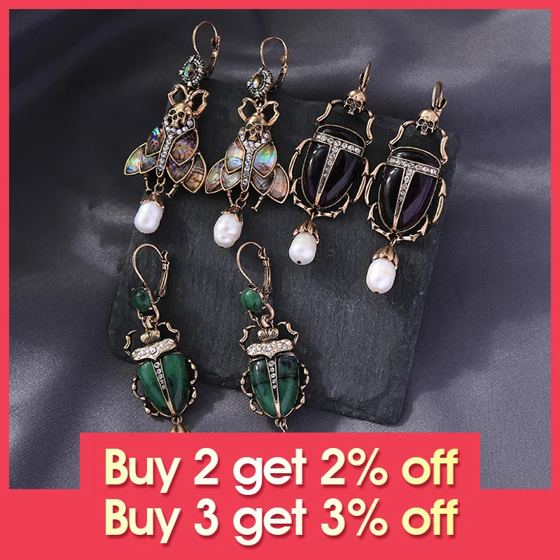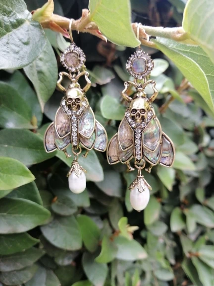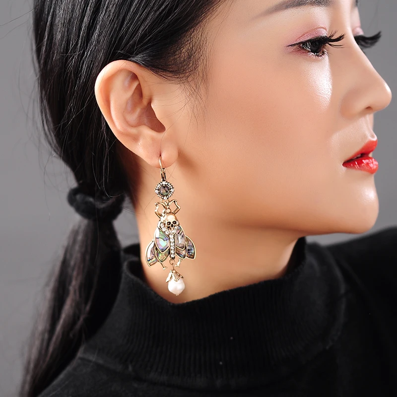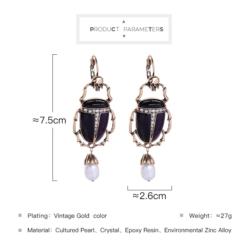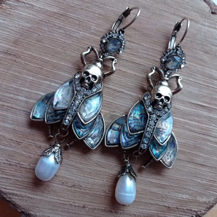 Женские винтажные серьги-подвески с черепом, из смолы темного цвета, с культивированным жемчугом