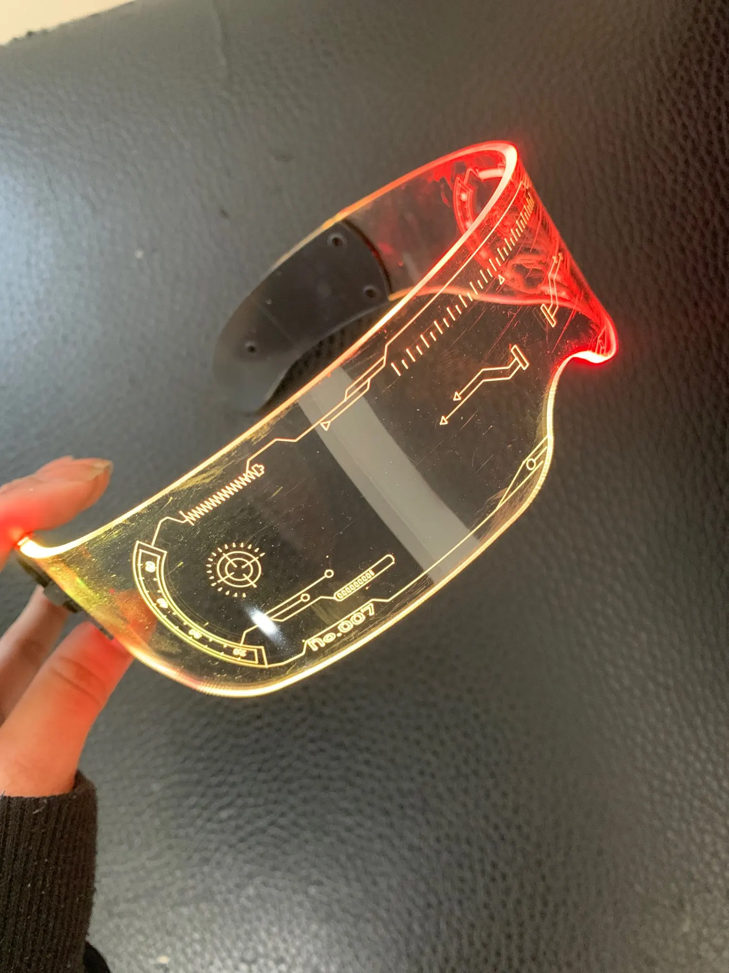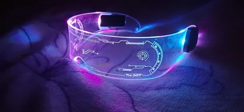 Бомбезные очки! Пришли в Новосибирск за рекордные 12 дней. На обеих дужках выемки для круглых батареек, контакт бывает нестабилен, но в целом все чинится подгибанием медных контактов. Однозначно стоят своих денег, кто любит кибер футуристичное - однозначно брать)