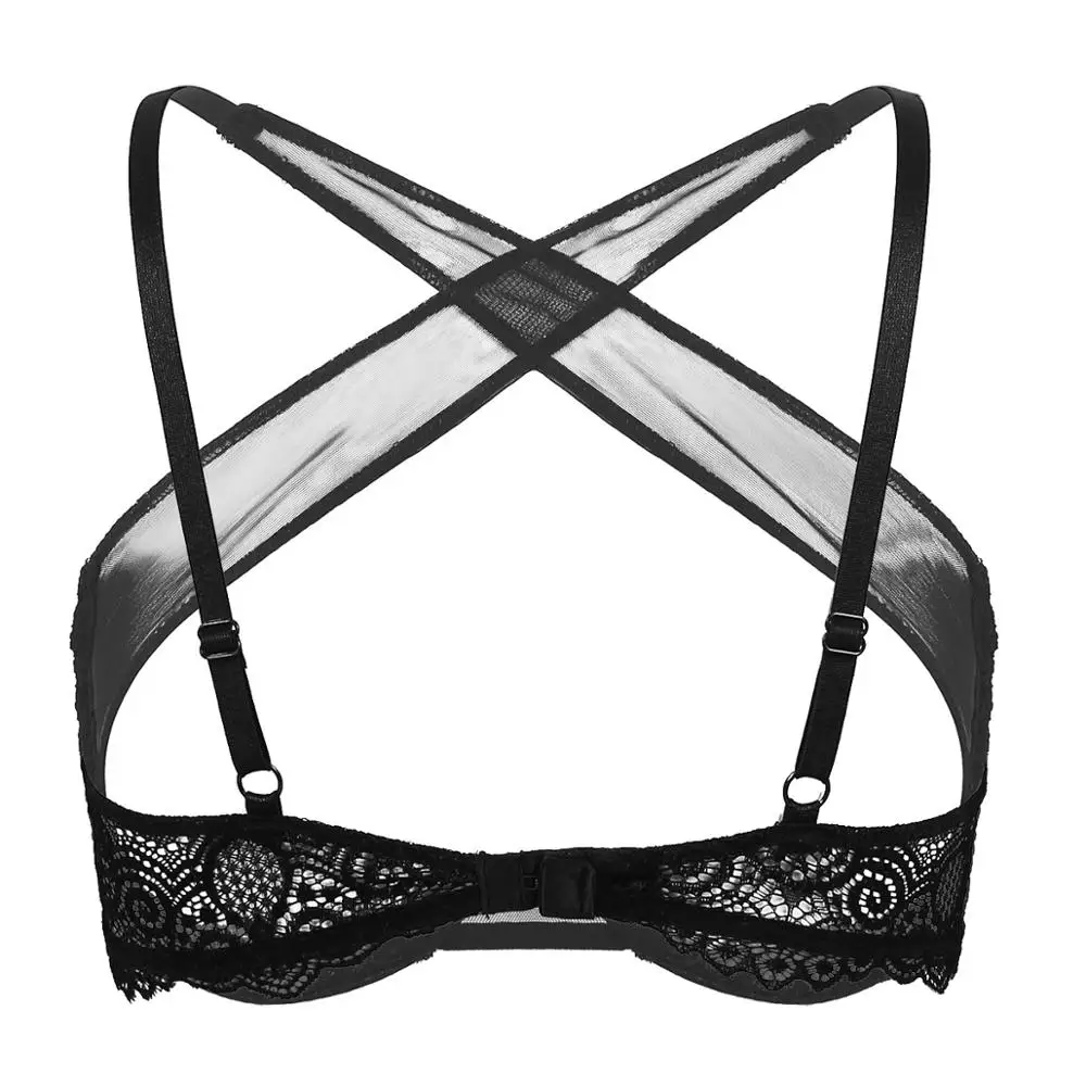 Особенности:Женский прозрачный бюстгальтер на косточках, привлекательный и очаровательный.Регулируемые бретельки перекрещиваются спереди и выдалбливают грудь, кружевные чашечки на косточках обеспечивают хорошую поддержку.Сзади 3 ряда с двумя застежками-крючками для надежной фиксации. Дышащая и легкая ткань, удобная в носке.Идеально подходит для романтической ночи, свадебной ночи, лучший подарок на День святого Валентина для себя или ваших возлюбленных.Пожалуйста, внимательно проверьте размер перед покупкой, ручная стирка только в холодной воде.