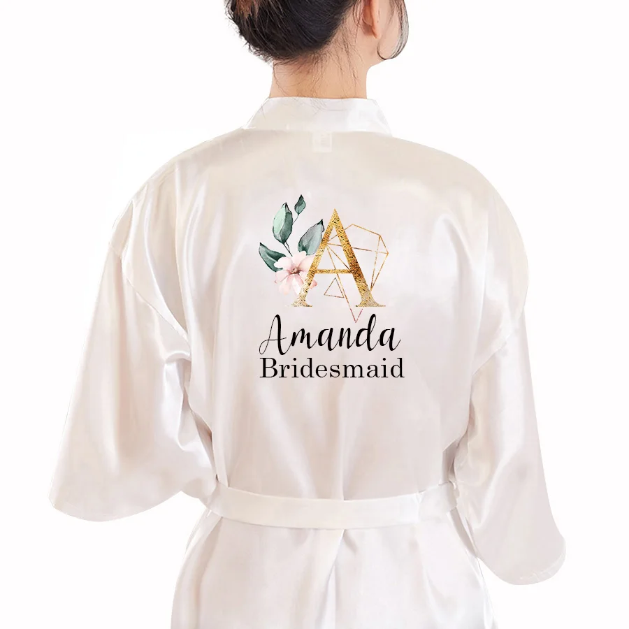 Свадебный Атласный халат, индивидуальное имя, цветочный принт