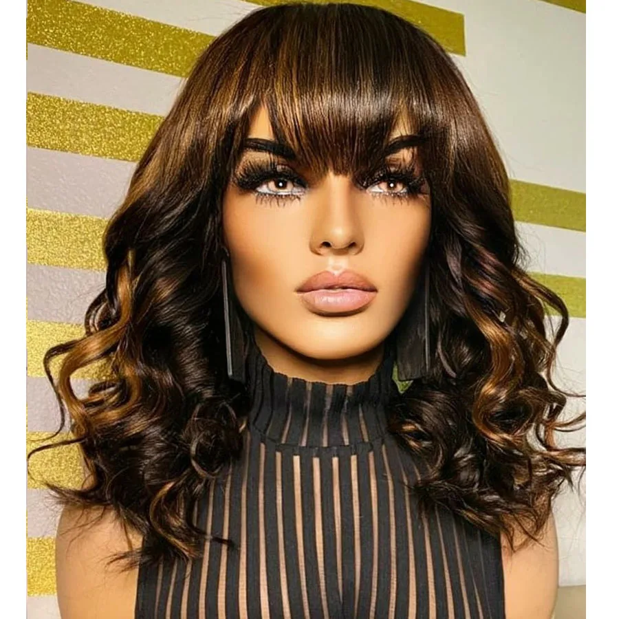 200 плотные парики с бахромой Средний Auburn коричневый Glueles чел...
