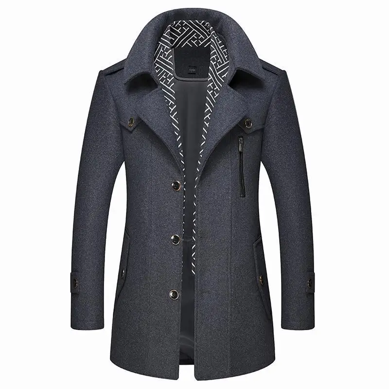 Мужское шерстяное пальто, ветрозащитная теплая куртка из смешанной ...