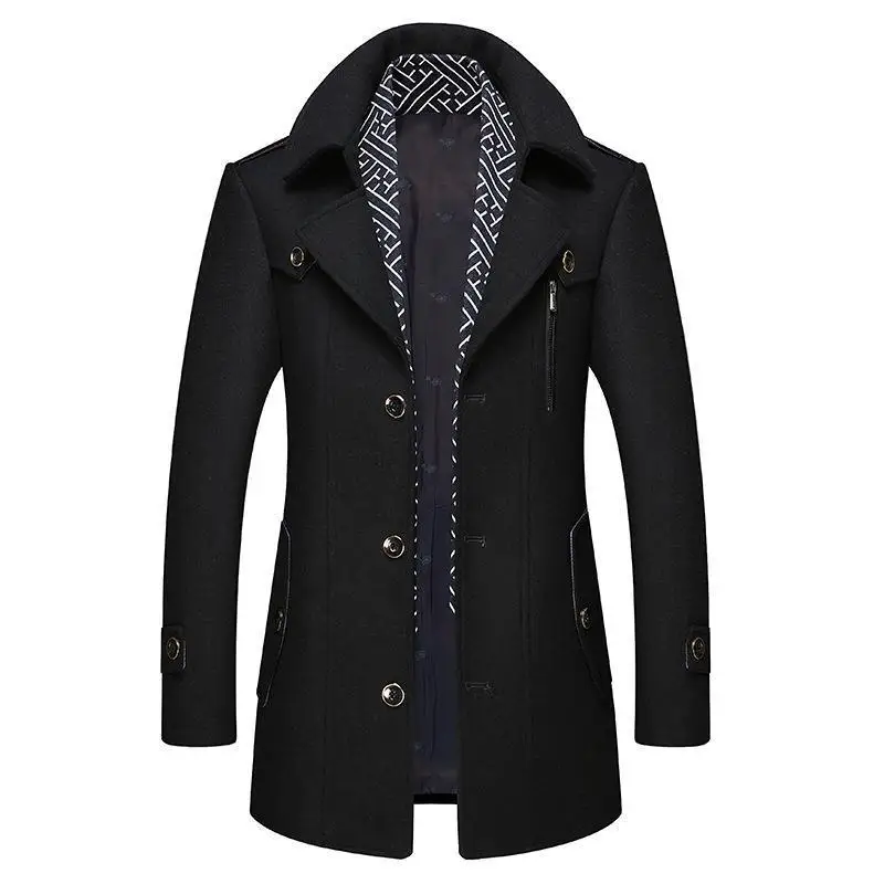 Зимнее шерстяное пальто мужское средней длины утепленное хлопковое ...