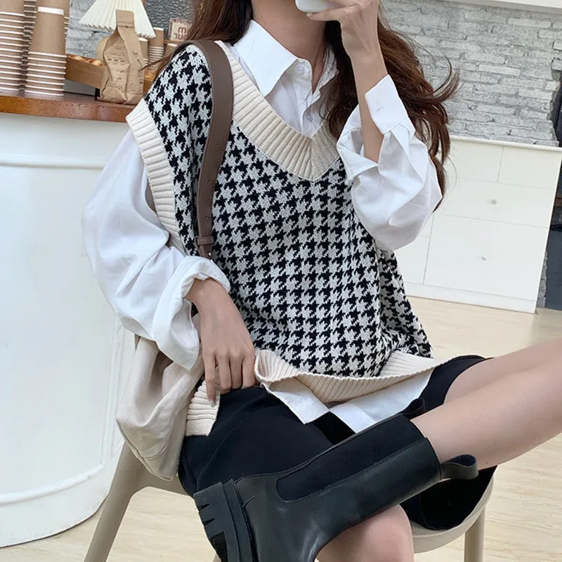 Осень-зима 2020, Свободный вязаный жилет без рукавов в стиле преппи...