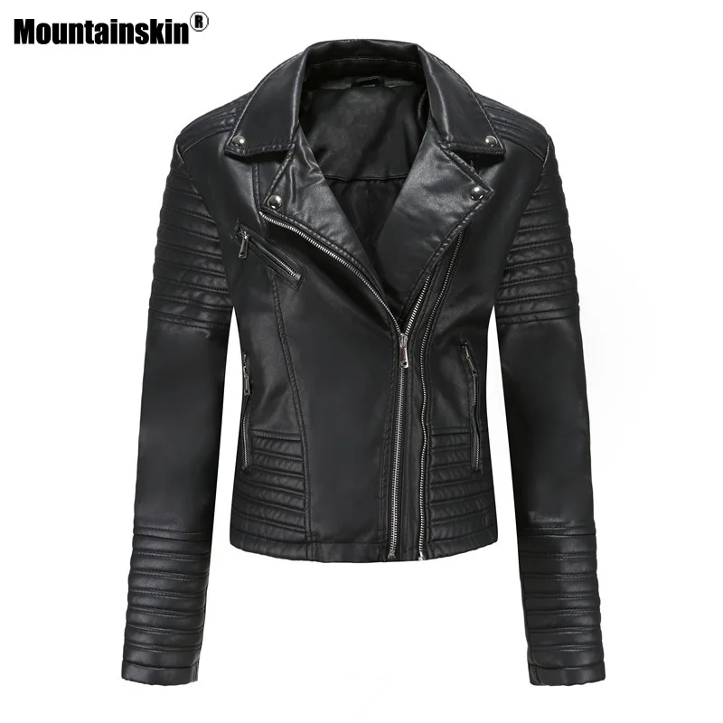 Женская кожаная куртка Mountainskin, повседневная приталенная мотоциклетная куртка из искусственной кожи, на молнии, европейские размеры, MT013, осень