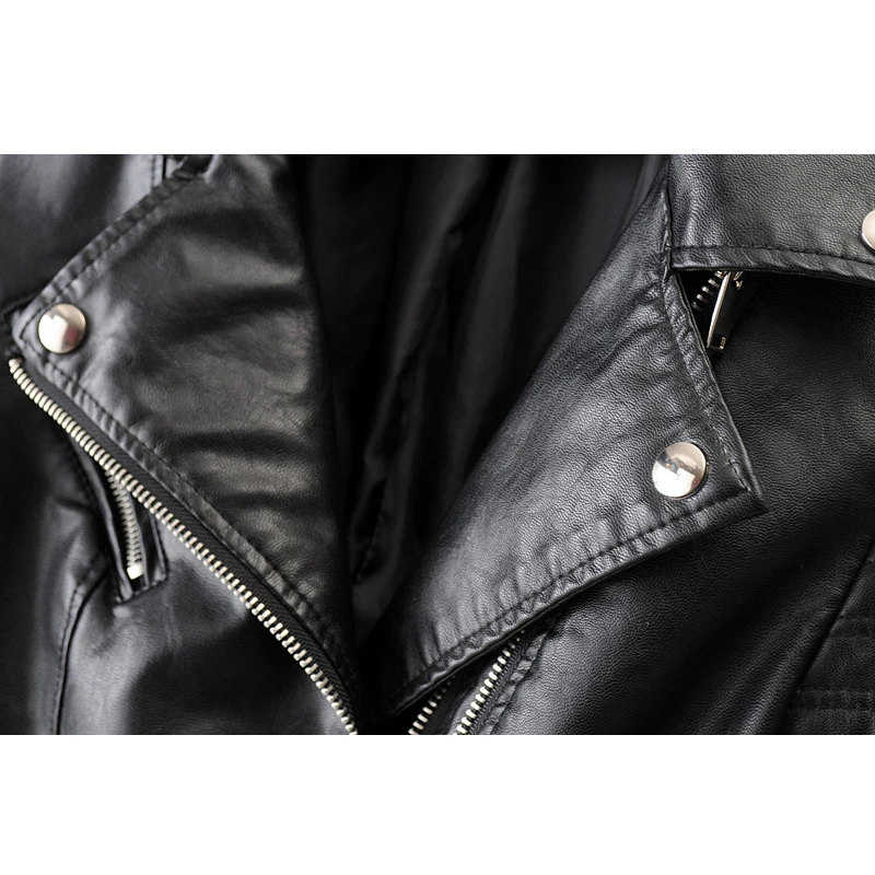 Женская мотоциклетная куртка из искусственной кожи, Черная байкерск...